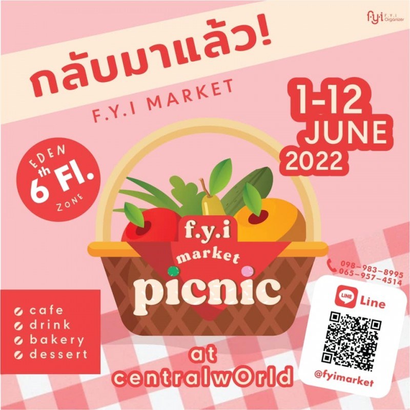 กลับมาแล้วกับงาน picnic สัมผัสกับบรรยากาศการปิคนิคที่ไม่ซ้ำใคร เดินช้อปกันแบบแอร์เย็นฉ่ำ ๆ ไม่ต้องกังวลเรื่องฟ้าฝนแน่นอน และเรายังขนขบวนขนม เบอเกอรี่คาว หวาน มาเอาใจทุกคนกันแบบจุก ๆ และยังมีร้านเครื่องดื่มมาให้ทานคู่กับขนมฟิน ๆ เตรียมตัวจูงมือคนรักคนสนิทมาปิคนิคกัน ณ ชั้น 6 โซน EDEN