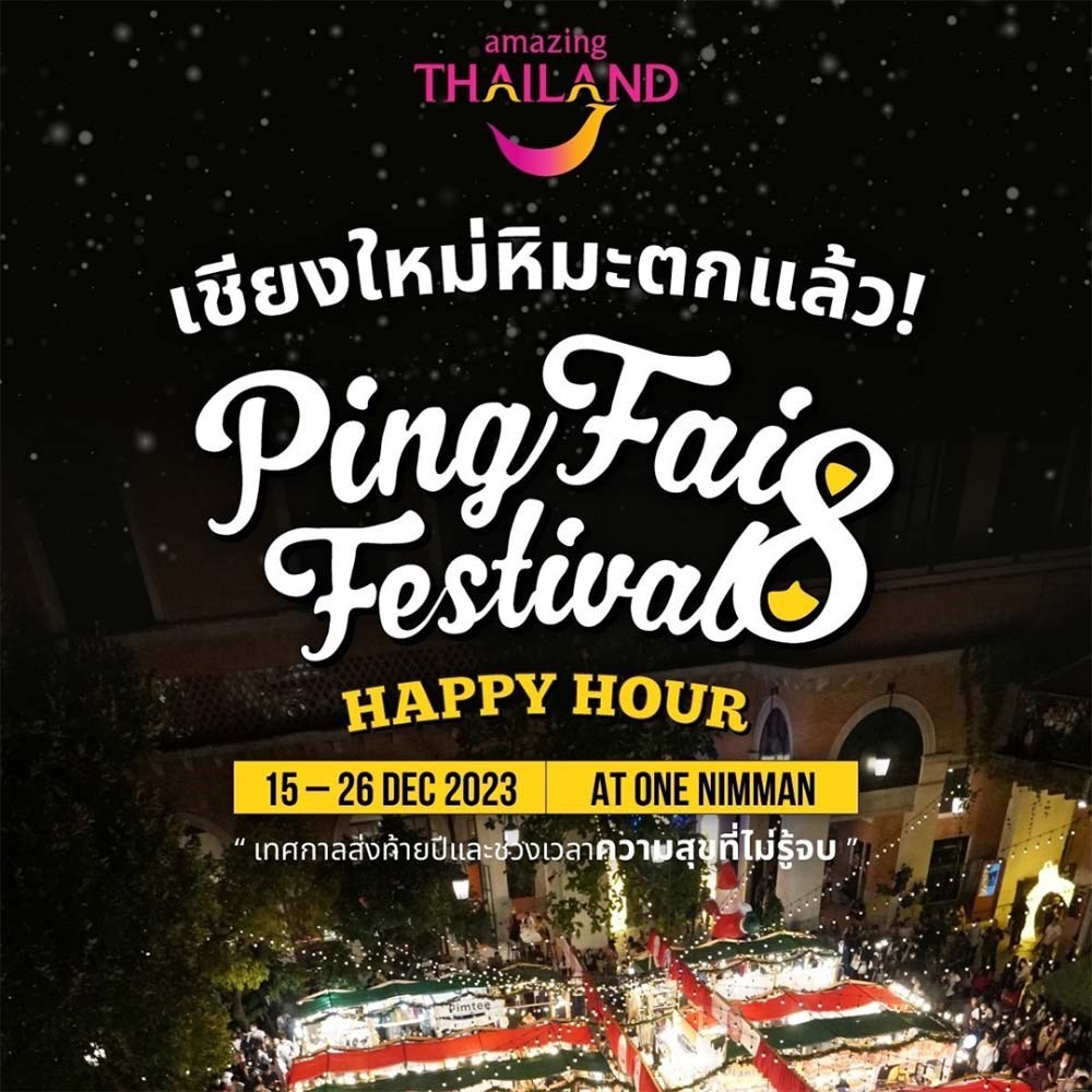 ปีนี้เรากลับไปผิงไฟด้วยกันนะ! Ping Fai Festival 8 : Happy Hour มาใช้ช่วงเวลาดี ๆ ไปด้วยกัน ในเทศกาลส่งท้ายปี และ Winter Lifestyle Market ที่แรกของเชียงใหม่ที่ใหญ่ที่สุดในภาคเหนือ อิ่มอร่อยไปกับกว่า 55 ร้านดังทั่วประเทศ ช้อปเพลิน กับ ร้านสุดคราฟต์เชียงใหม่ เพิ่มจังหวะแห่งความสุขด้วยเพลงเพราะ ๆ จากศิลปินโลคอล และวง Purpeech (19 ธ.ค. 66) ถ่ายรูปเช็คอิน ภายใต้บรรยากาศเทศกาลคริสต์มาส พลาดไม่ได้เลย! กับการปิ้งมาร์เมชโลว์ใจกลาง นิมมานเหมินทร์ ไปด้วยกัน เริ่ม 15 - 26 ธันวาคม 2566 เวลา 16:00 - 23:00 น.