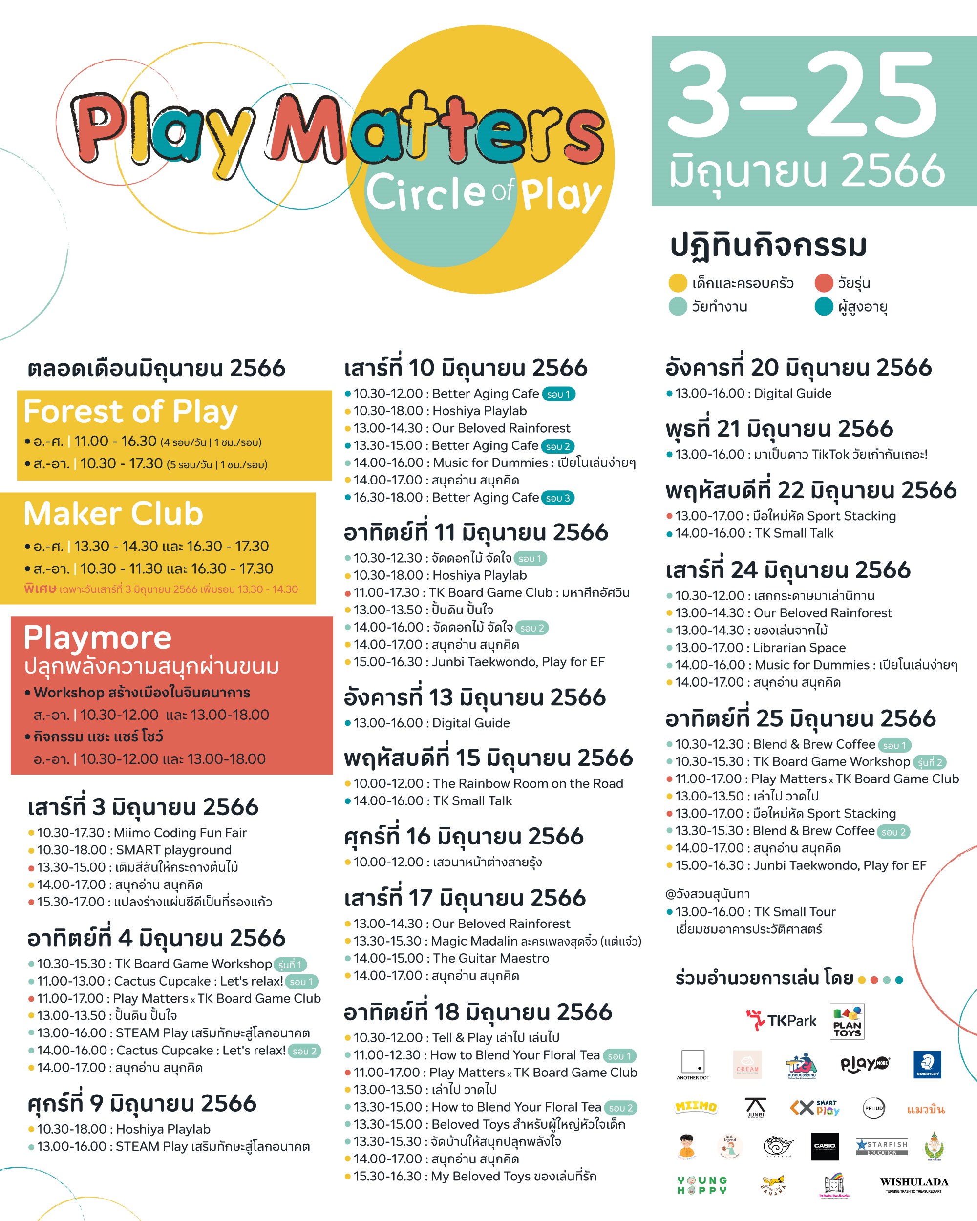 ติดตามรายละเอียดเพิ่มเติมได้ทาง www.tkpark.or.th และ https://bit.ly/PlayMatters23