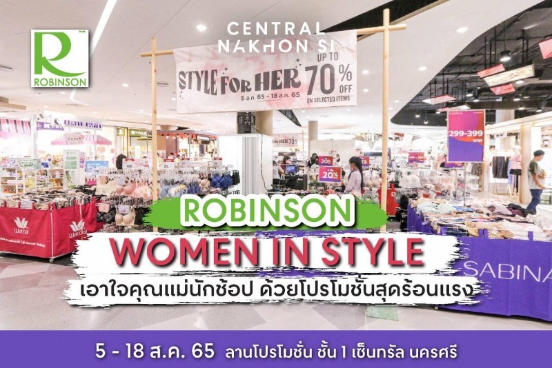 RBS Women In Style วันที่ 5 - 18 สิงหาคม 2565 ณ ศูนย์การค้าเซ็นทรัล นครศรี วันแม่ปีนี้โรบินสันชวนช้อป ไอเทมเด็ดเซอร์ไพรส์คุณแม่ ​ลดสูงสุด 30-50% พร้อมสิทธิพิเศษอีกเพียบ ในงาน RBS Women In Style พบแบรนด์ดังมากมาย​อาทิเช่น​ Wacoal,Sabina, Triumph, BSC, Arty, Scholl, Polo​club วันที่ 5 - 18 ส.ค. 65 ณ ลานโปรโมชั่น ชั้น 1 ศูนย์การค้าเซ็นทรัล นครศรี ใช้คะแนนลดและรับเพิ่มสูงสุด 30% *(เฉพาะบัตรเครดิตที่ร่วมรายการ) สมาชิกเดอะวัน และบัตรเครดิตเซ็นทรัล เดอะวัน รับคูปองแทนเงินสดหรือดิจิทัลคูปอง สูงสุด 6,500 บาท *(เมื่อช้อปตามเงื่อนไข)