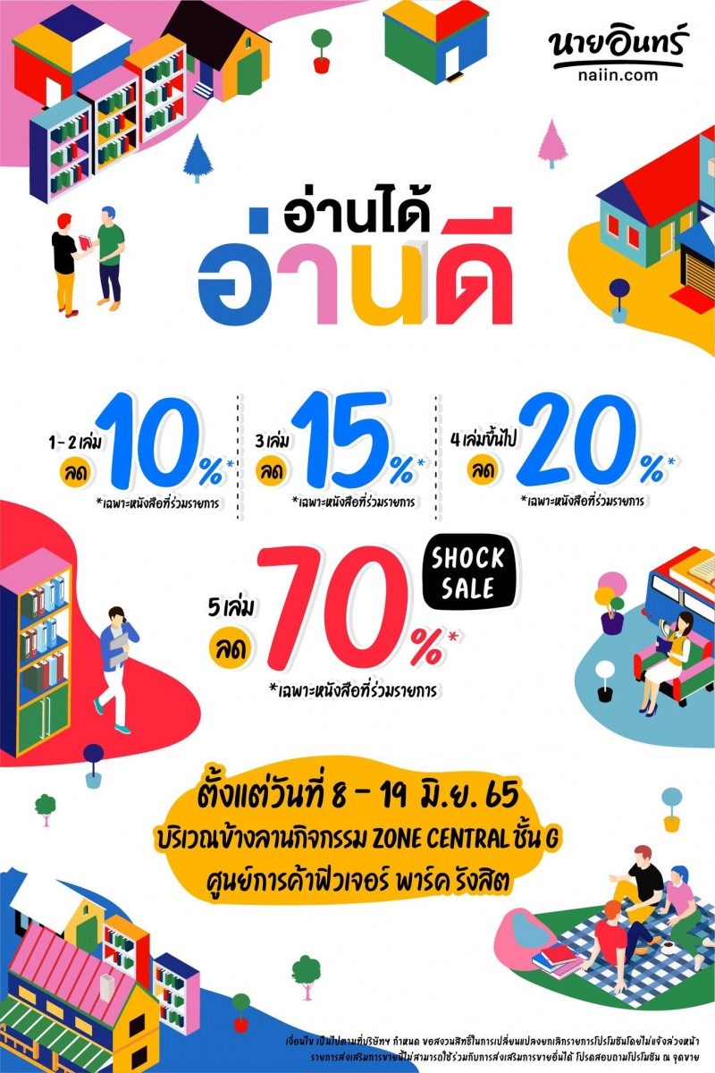 อ่านได้อ่านดี วันที่ 8 - 19 มิถุนายน 2565 ณ ฟิวเจอร์พาร์ค พบกับงาน อ่านได้อ่านดี งานหนังสือสุดชิค สำหรับนักอ่านคูล ๆ ยกขบวนกองทัพหนังสือน่าอ่านมาลดราคาแบบจุใจ พร้อมจัดเต็มโปรโมชันโดนใจ Shock Sale! ลดสูงสุด 70%* เมื่อซื้อ 5 เล่มขึ้นไปหรือเมื่อซื้อ 1-2 เล่ม ลด 10%* ซื้อ 3 เล่ม ลด 15%* ซื้อ 4 เล่มขึ้นไป ลด 20%* พบกันวันนี้ - 19 มิ.ย. 65 ที่ชั้น G โซนเซ็นทรัล ฟิวเจอร์พาร์ค *เฉพาะหนังสือหรือสินค้าที่ร่วมรายการ