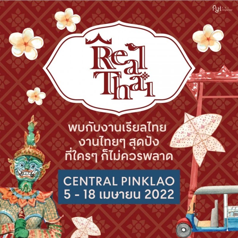 พบกับงานเรียลไทย งานไทย ๆ สุดปัง ใครที่คิดถึงบรรยากาศไทย ๆ ในสมัยก่อนไม่ควรพลาดงานนี้! เอาใจเหล่านักช้อปฝั่งธน! พบกับงาน Real Thai งานไทย ๆ สุดปัง ที่รวบรวมสินค้าไว้มากมาย ไม่ว่าจะเป็นของกิน เสื้อผ้า แฟชั่น เครื่องประดับ มีมาให้เลือกช้อปกันแบบจุก ๆ และยังมีกิจกรรมการแสดงดนตรีไทยเพราะ ๆ ภายในงาน วันที่ 5 - 18 เม.ย. 65