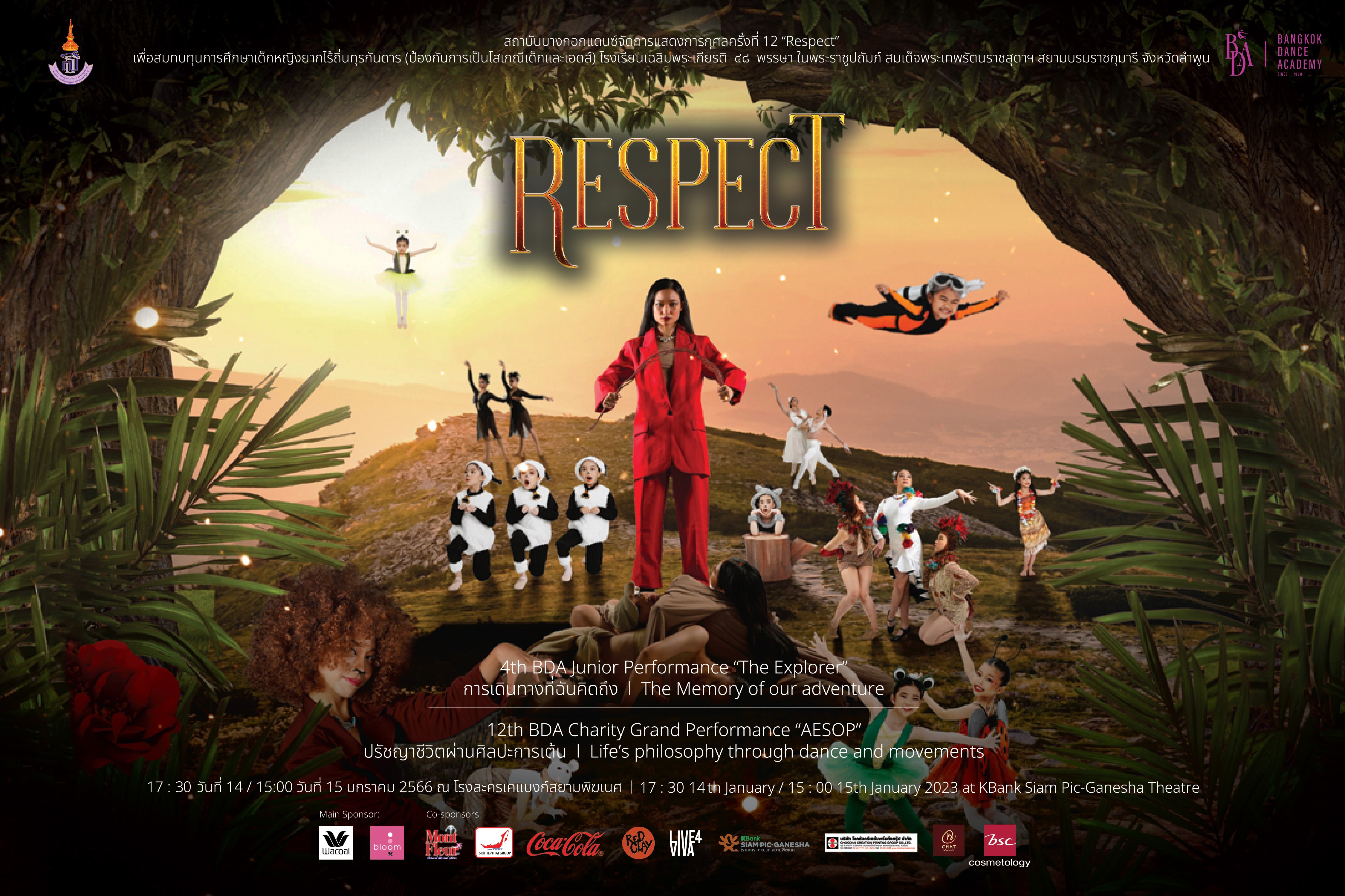 สถาบันบางกอกแดนซ์จัดการแสดงศิลปะการเต้นรำอีกครั้งแบบยิ่งใหญ่ เพื่อเปิดศักราชความบันเทิง โดยใช้ชื่อการจัดแสดงว่า RESPECT ประกอบด้วยการแสดงของนักแสดง 2 รุ่นด้วยกัน ได้แก่ 4th BDA Junior Performance (The Explorer) และ 12th BDA Charity Grand Performance (AESOP) เปิดการแสดงเป็น รอบบุคคลทั่วไป และ รอบการกุศล เพื่อนำรายได้ส่วนหนึ่งมอบให้แก่ โรงเรียนเฉลิมพระเกียรติ ๔๘ พรรษา ในพระราชูปถัมภ์ สมเด็จพระเทพรัตนราชสุดาฯ สยามบรมราชกุมารี ตั้งอยู่ในจังหวัดลำพูน