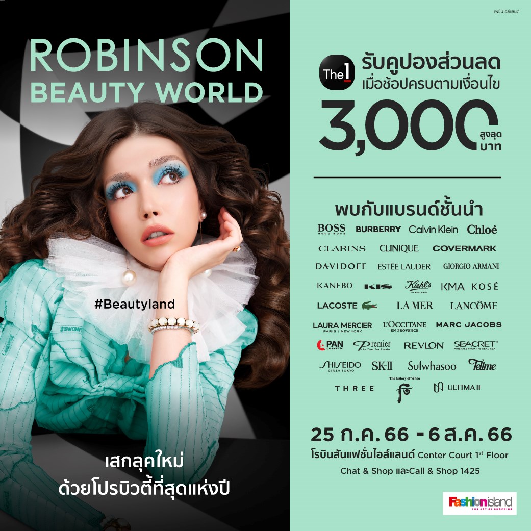 รวมเครื่องสำอางและน้ำหอมแบรนด์ดังมากที่สุด Fashionisland ชวนสาว ๆ มาอัพเดทเทรนด์บิวตี้แห่งปี กับงาน ROBINSON BEAUTY WORLD ที่รวบรวมเมคอัพ และน้ำหอม แบรนด์ชั้นนำ อาทิ Estée Lauder, LAMER, Lancôme, SK-II, SHISEIDO, CLARINS, Kiehl's, Sulwhasoo, BURBERRY, REVLON และอีกหลายหลายแบรนด์ยอดนิยม พร้อมโปรโมชั่นสุดปัง ชวนสาว ๆ มาเสกลุคใหม่ให้สวยสับก่อนใคร ด้วยโปรบิวตี้แห่งปีที่งาน ROBINSON BEAUTY WORLD ที่ชั้น 1 (เซ็นเตอร์คอร์ท) ศูนย์การค้าแฟชั่นไอส์แลนด์ *เงื่อนไขโปรโมชั่นเป็นไปตามที่บริษัทกำหนด โปรดตรวจสอบรายละเอียดเพิ่มเติมอีกครั้ง ก่อนใช้บริการ