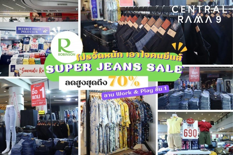 Robinson Super Jeans Sale วันที่ 21 - 31 กรกฎาคม 2565 ณ เซ็นทรัลพระราม 9 คนรักยีนส์รีบมาตำ! Robinson Super Jeans Sale จัดโปรสุดปังลดสูงสุด 70% ลดแบบจุใจกับกางเกงยีนส์ เสื้อผ้า และอื่น ๆ จากหลากหลายแบรนด์ วันที่ 21 - 31 กรกฎาคม 2565 ณ ลาน Work & Play ชั้น 1 เซ็นทรัลพระราม 9
