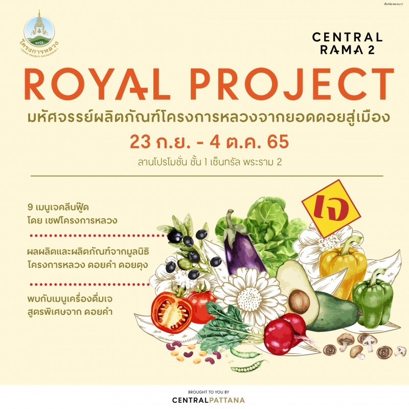 Royal Project มหัศจรรย์ผลิตภัณฑ์โครงการหลวงจากยอดดอยสู่เมือง วันที่ 23 ก.ย. - 4 ต.ค. 65 ณ ลานโปรโมชั่น ชั้น 1 เซ็นทรัล พระราม 2 9 เมนูเจคลีนฟู๊ด โดย เชฟโครงการหลวง พลผลิตและผลิตภัณฑ์จากมูลนิธิโครงการหลวง ดอยคำ ดอยตุง พบกับเมนูเครื่องดื่มเจ สูตรพิเศษจาก ดอยคำ