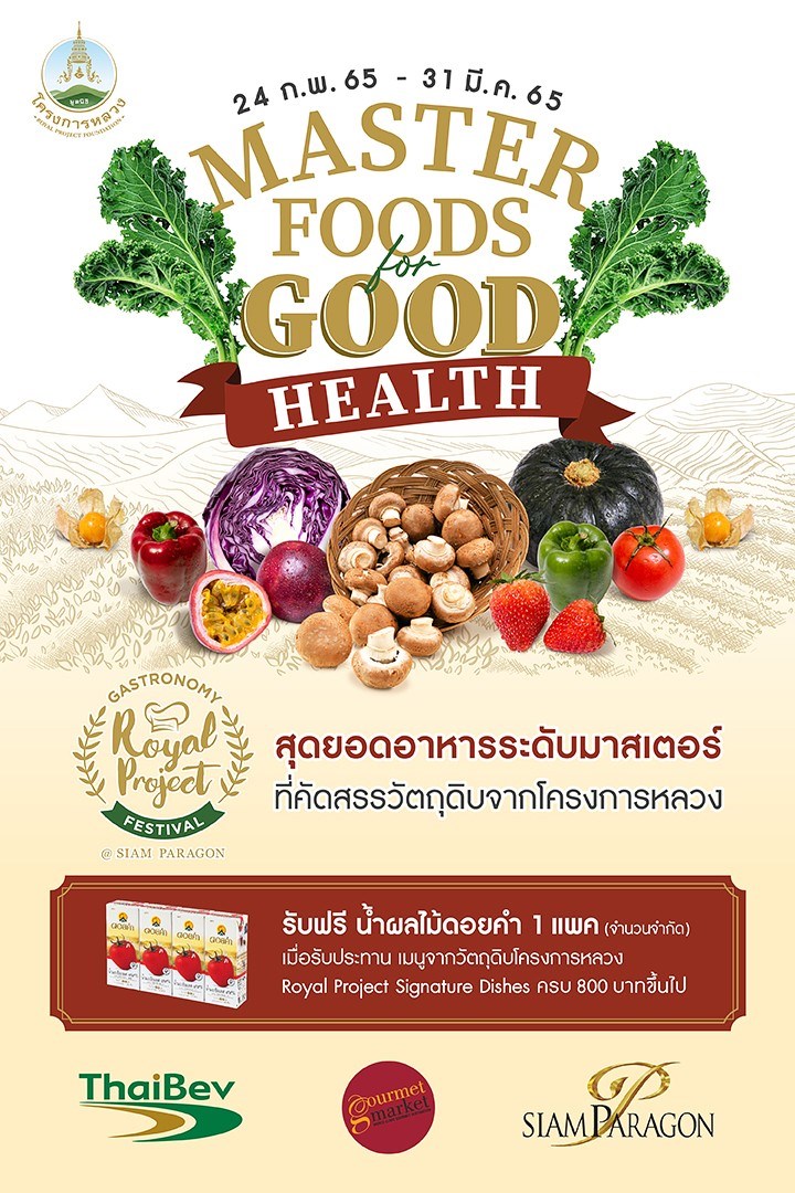 สยามพารากอนชวนคุณมารับความอร่อยพร้อมคุณประโยชน์จากวัตถุดิบคุณภาพระดับพรีเมียมที่งาน "Royal Project Gastronomy Festival 2022 @Siam Paragon" ภายใต้คอนเซ็ปต์ "Master Foods for Good Health" สุดยอดอาหารระดับมาสเตอร์ที่คัดสรรวัตถุดิบจากโครงการหลวง