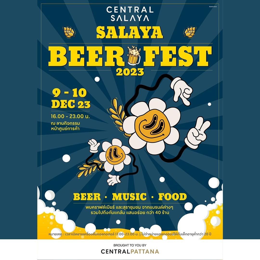 Salaya Beer Fest 2023 พบคราฟต์เบียร์ และสุราชุมชน จากแบรนด์ต่าง ๆ รวมไปถึงกับแกล้ม แสนอร่อย กว่า 40 ร้าน วันที่ 9 - 10 ธ.ค. 66 เวลา 16.00 - 23.00 น. ณ ลานกิจกรรมหน้าศูนย์การค้าเซ็นทรัล ศาลายา *หมายเหตุ เวลาเปิดขายเครื่องดื่มแอลกอฮอล์ 17.00 - 23.00 น. และไม่จำหน่ายแอลกอฮอล์ให้กับเด็กอายุต่ำกว่า 20 ปี