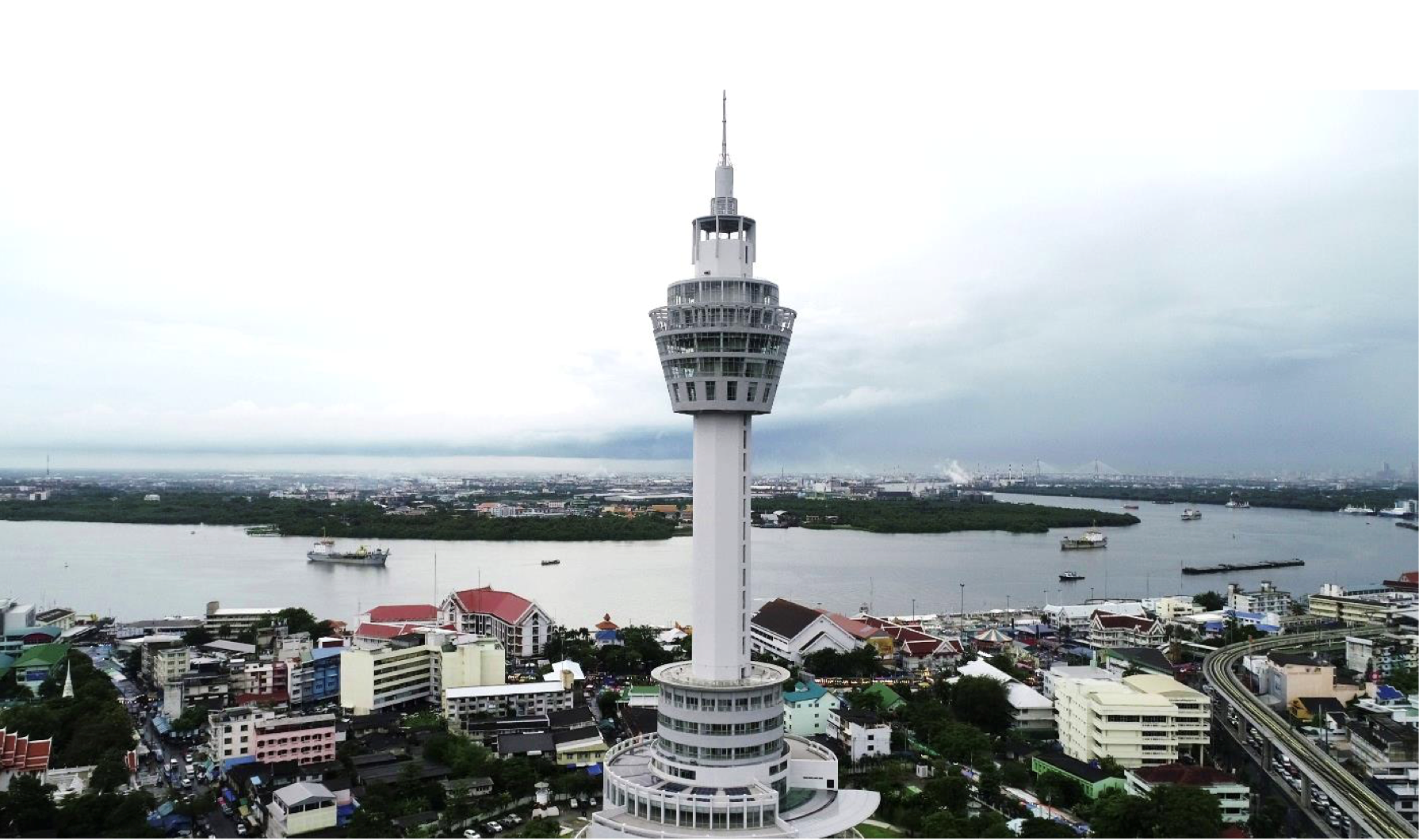 อุทยานการเรียนรู้และหอชมเมืองสมุทรปราการ ในส่วนนิทรรศการ “ร้อยเป็นเรื่อง เมืองปากน้ำ” ที่นำเสนอเรื่องราวของเมืองสมุทรปราการในทุกมิติ ตั้งแต่อดีต ปัจจุบัน จนถึงการพัฒนาในอนาคต โดยมีทั้งหมด 6 โซนจัดแสดง ดังนี้