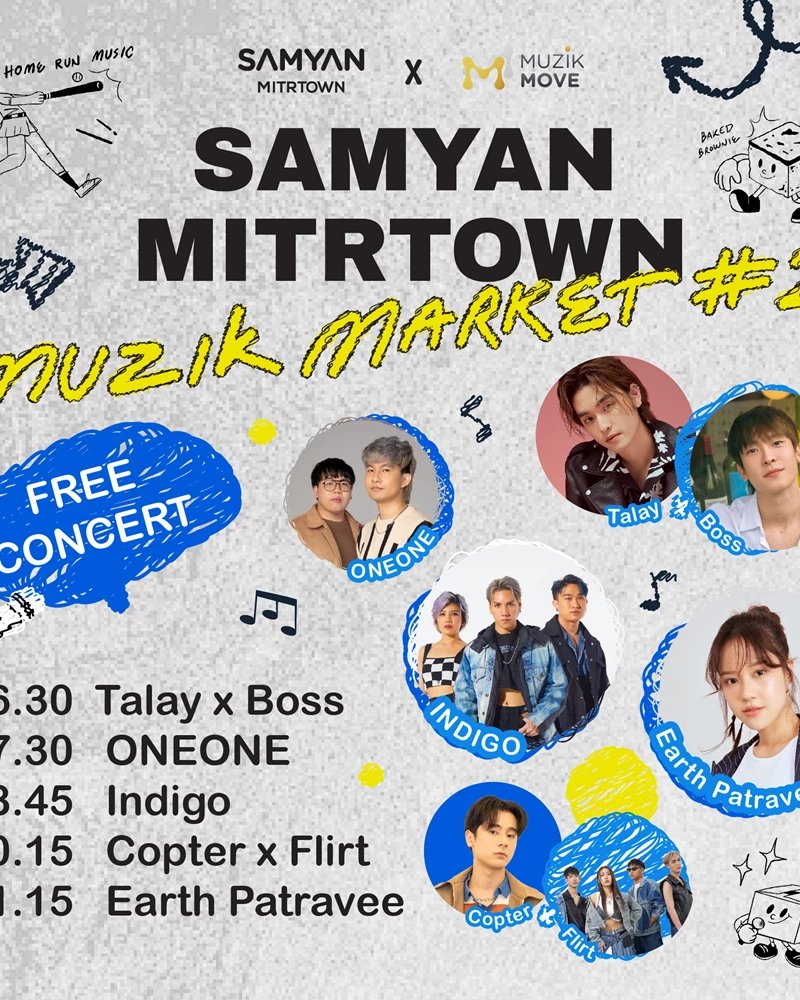 เปิดฟลอร์ความสนุกไปกับฟรีคอนเสิร์ตไลน์อัพแน่น นำทีมโดย Indigo BAND จากค่าย Move Records, EarthPatravee จาก Muzik Move, OneOne Band และ Copter x FLIRT จากค่าย BOXX MUSIC, LAYYO x Boss จากค่าย Baked Brownie