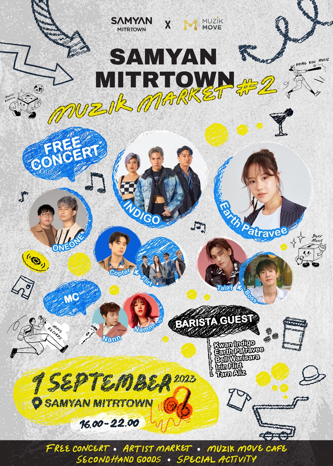 สามย่านมิตรทาวน์ฉลองความสุขครบรอบ 4 ขวบ... เตรียมเปิดบ้านต้อนรับกองทัพความสนุกสุดเอ็กซ์คลูซีฟอย่างต่อเนื่องจากศิลปินภายใต้ มิวซิกมูฟ กับงาน Samyan Mitrtown Muzik Market#2 ครั้งนี้จัดเต็มกว่าเดิมทั้ง ฟรีคอนเสิร์ต line up แน่นๆ Artist Market ที่คัดเฉพาะของแรร์ไอเท็มจากศิลปินมาแบบไม่มีกั๊ก ท็อปด้วยกิจกรรมสุดฟินตลอดงาน และพิเศษ!!มุมคาเฟ่มาพร้อมกับเมนูลับที่พบได้เฉพาะงานนี้ที่เดียว นำทีมก่อการสนุกโดย วง Indigo, เอิ้ต ภัทรวี, Copter X Flirt, ONEONE, Talay X Boss และอีกมากมาย… ปักหมุด 1 ก.ย.นี้ 4โมงเย็น - 4 ทุ่ม ชั้น G สามย่านมิตรทาวน์