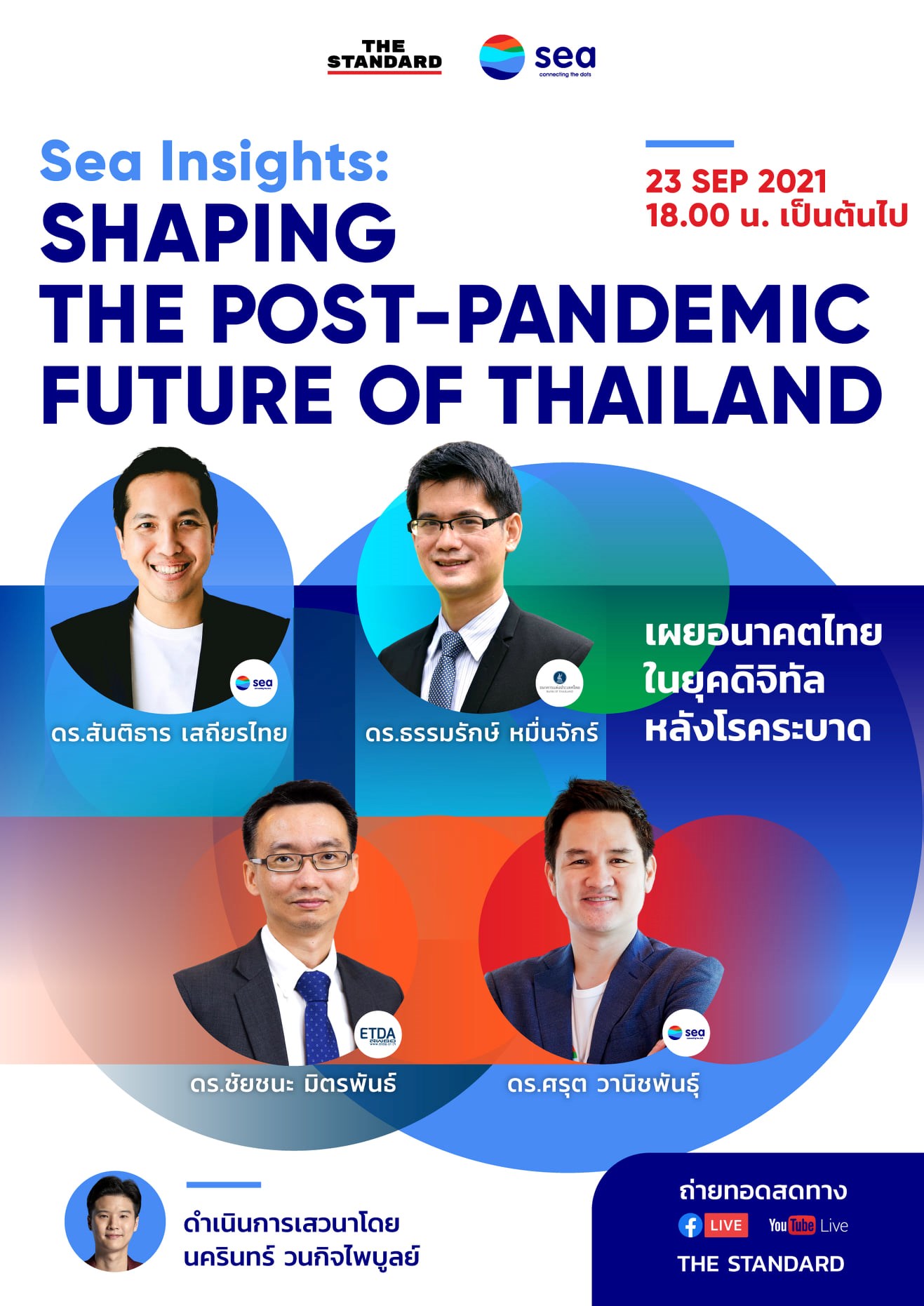 Sea (Group) ในฐานะผู้ให้บริการด้านอินเทอร์เน็ตแพลตฟอร์มชั้นนำ ร่วมกับ THE STANDARD ชวนทุกท่านมาร่วมกันสะท้อนภาพประเทศไทยหลังวิกฤตโควิด มาร่วมวิเคราะห์ความท้าทาย โอกาส และอนาคต ที่จะถูกขับเคลื่อนด้วยเทคโนโลยีดิจิทัล ผ่านมุมมองของ 4 สปีกเกอร์ที่มีชื่อเสียงจากองค์กรชั้นนำของประเทศในหลากหลายแวดวง