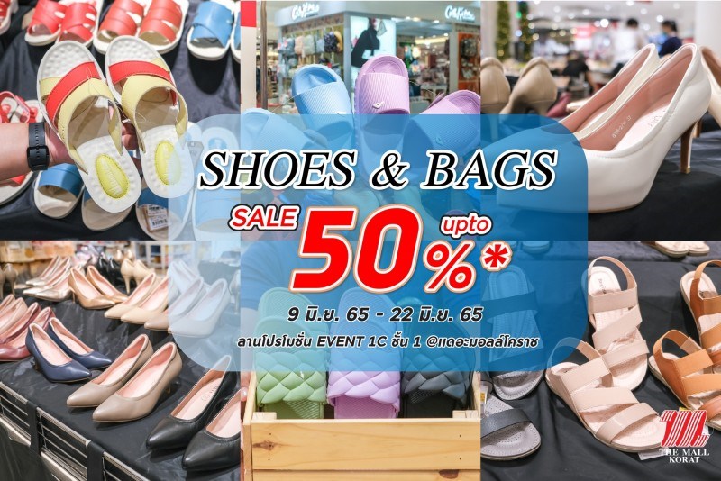 Shoes & Bags Sale วันที่ 9 - 22 มิถุนายน 2565 ณ เดอะมอลล์ โคราช รวมไอเทมเอาใจคุณผู้หญิง ไม่ว่าจะเป็นรองเท้าคัชชู รองเท้าลำลอง และอื่น ๆ ลดสูงสุด 50%* จากแบรนด์ดังชั้นนำ อาทิ PoloClub ลด 50%, SIRENA ลด 30-50%, HEELCARE ลดสูงสุด 20% สินค้าราคา One Price ADDA รองเท้าแตะ ราคาพิเศษ 100, 179, 199 บาท / CHARLED รองเท้าแตะ ราคาพิเศษ 190, 259, 359 บาท / REGINA รองเท้าลำลอง ราคาพิเศษ 490-890 บาท ทดลองสวมใส่และเลือกช้อปรองเท้าคู่โปรดที่พร้อมไปกับคุณได้แล้ววันนี้ ตั้งแต่วันที่ 9 - 22 มิ.ย. 65 ณ บริเวณ EVENT 1C ชั้น 1 (ด้านข้างกูร์เมต์ มาร์เก็ต) เดอะมอลล์โคราช *เฉพาะรุ่นที่ร่วมรายการ *โปรตรวจสอบเงื่อนไขเพิ่มเติม ณ จุดขาย