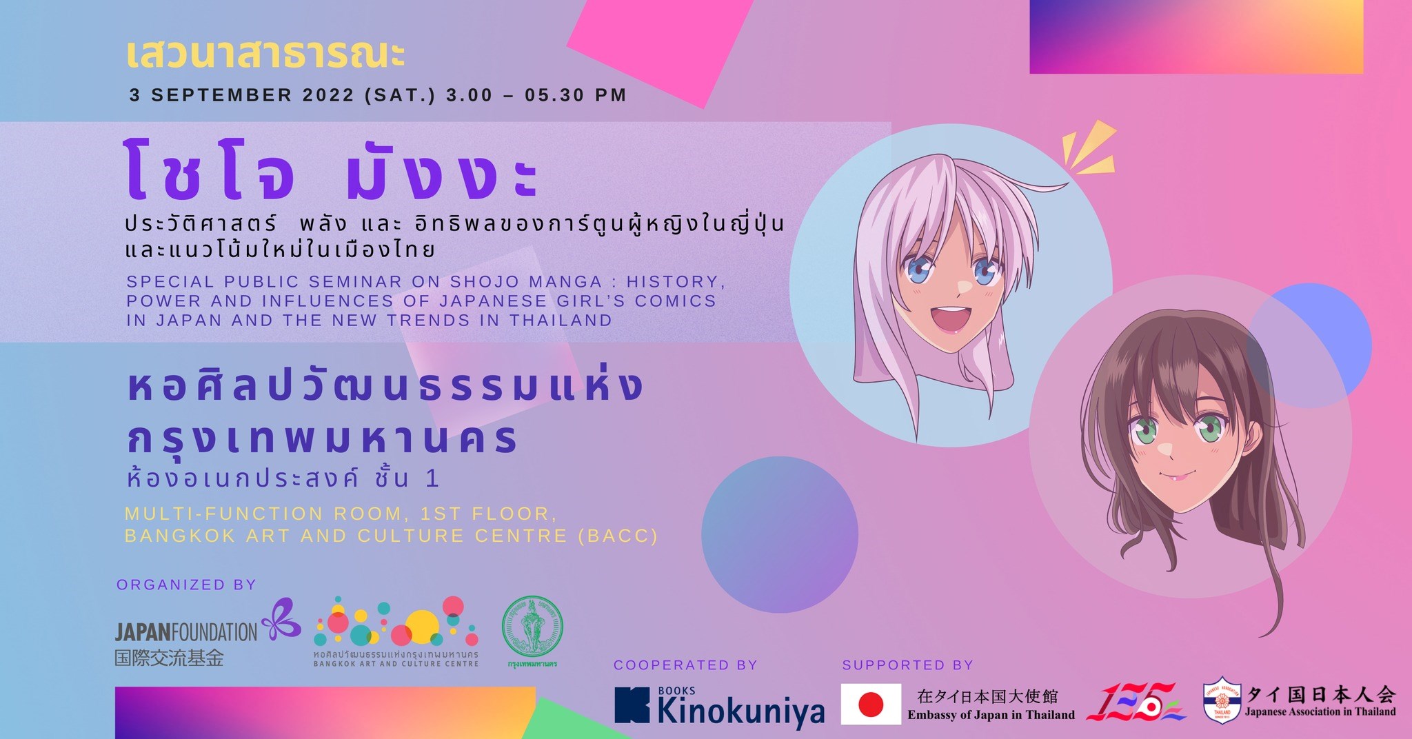ขอเชิญร่วมงานเสวนาสาธารณะ “โชโจ มังงะ : ประวัติศาสตร์ พลังและอิทธิพลของการ์ตูนผู้หญิงในญี่ปุ่น และแนวโน้มใหม่ในเมืองไทย”