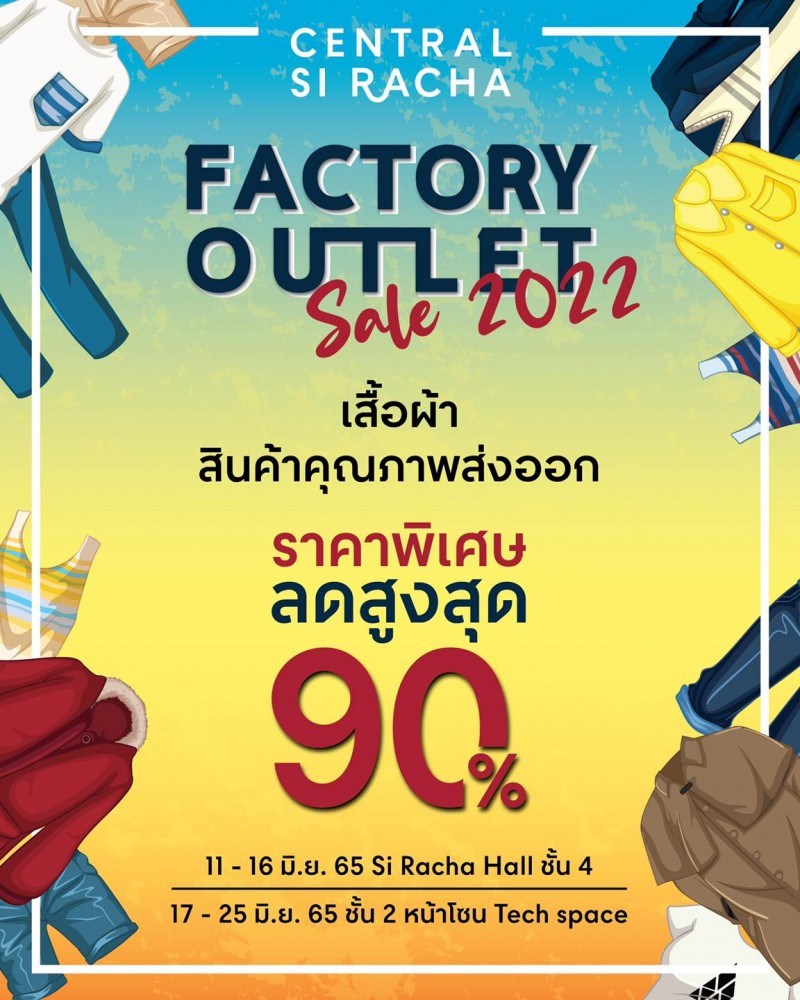 Si Racha Factory Outlet วันที่ 11 - 16 มิถุนายน 2565 ณ ศูนย์การค้า เซ็นทรัล ศรีราชา เตรียมตัวให้พร้อม "Si Racha Factory Outlet" มหกรรมเสื้อส่งออก ลดสูงสุด 90% เสื้อผ้าแฟชั่นสีสันสดใส ชุดกีฬาออกกำลังกาย ผ้าขนหนู และอื่น ๆ ตั้งแต่วันที่ 11 - 16 มิ.ย. 65 ณ Si Racha Hall ชั้น 4 ศูนย์การค้า เซ็นทรัล ศรีราชา รายละเอียดเพิ่มเติม