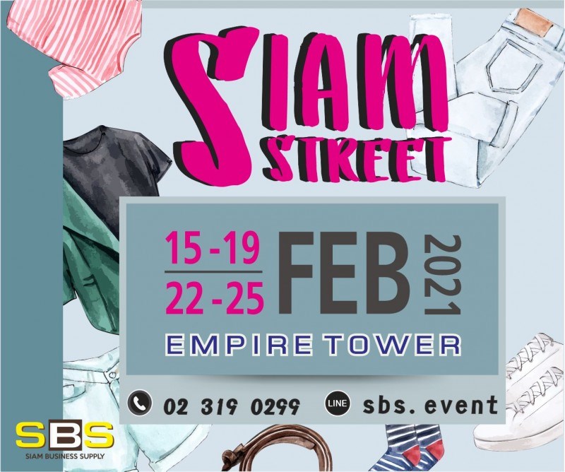 SIAM STREET EP.2 วันที่ 22 - 25 กุมภาพันธ์ 2564 ณ เอ็มไพร์ ทาวเวอร์ สาทร Em Space @Empire Tower แหล่งนัดพบใจกลางสาทร พบ Pop up shop ร้านดีแบรนด์ดังที่แวะเวียนมาอัพเดทเมนูใหม่ ของอร่อย สินค้าไลฟ์สไตล์ แฟชั่น เสื้อผ้า เครื่องประดับอินเทรนด์ เอาใจชาวออฟฟิสให้กินเพลิน ๆ ช้อปสบาย ๆ