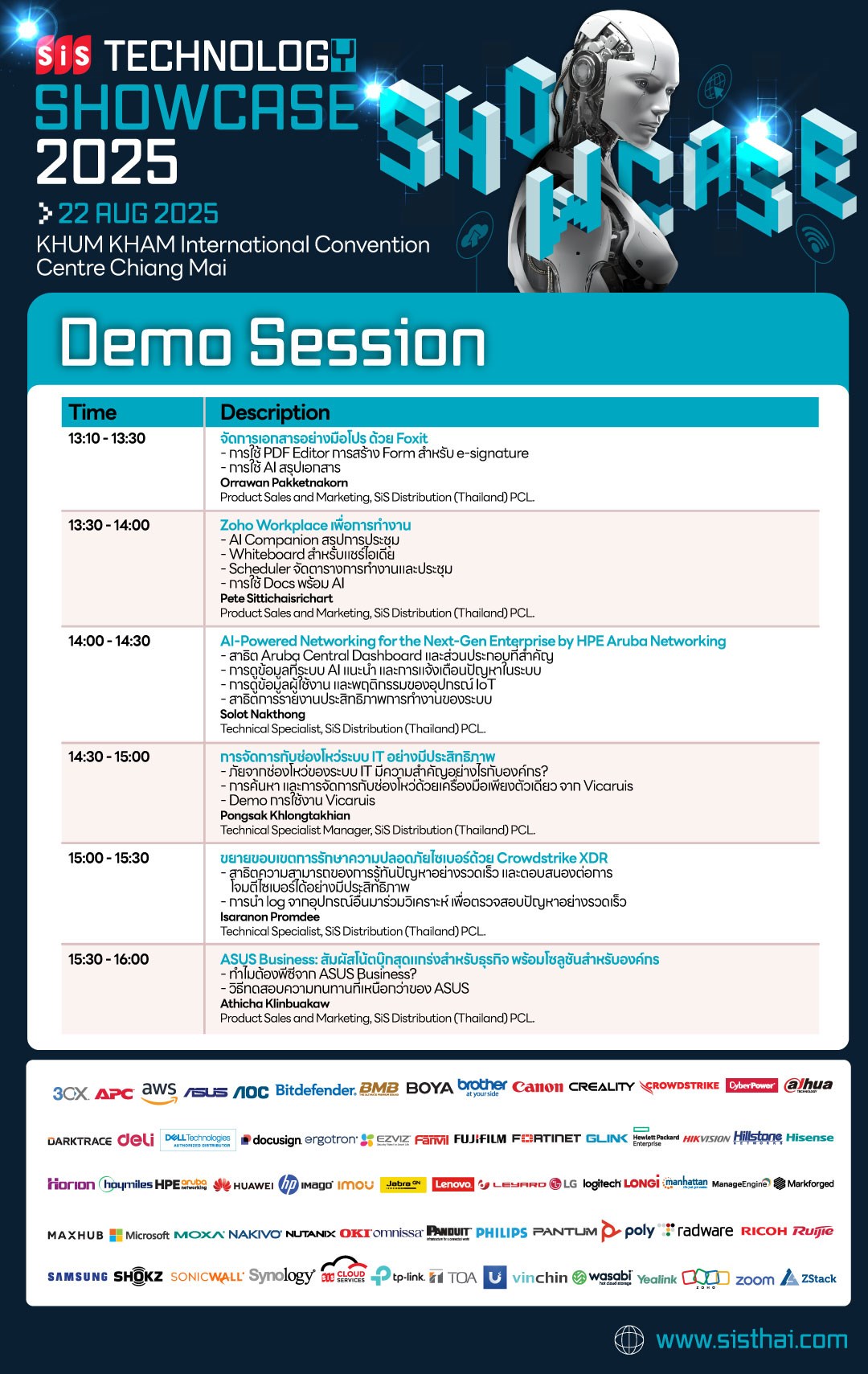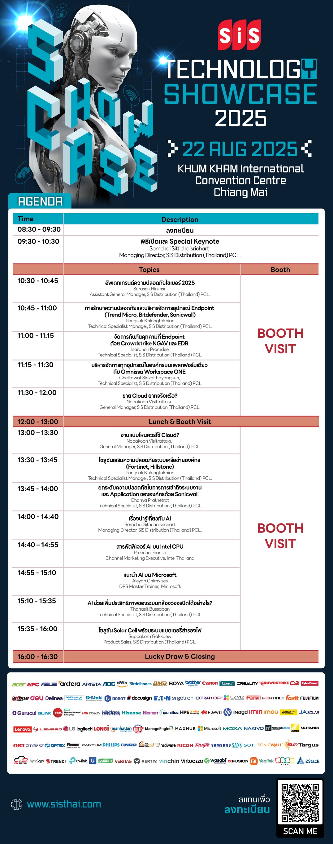 SiS Distribution (Thailand) PCL. มีความยินดีขอเชิญทุกท่านเข้าร่วมงาน SiS Technology Showcase 2025 Chiangmai
