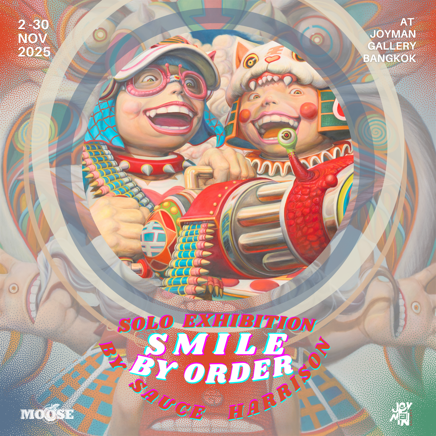 ภายใต้สีสันที่สดใส รอยยิ้มที่อ่อนโยน และความงามแบบ Pop-Surrealism ที่ดู “สนุกลุคคูลไปกับโลกจินตนาการ” — ผลงานชุด 𝙎𝙢𝙞𝙡𝙚 𝙗𝙮 𝙊𝙧𝙙𝙚𝙧 (2025) ของ Sauce Harrison ซ่อนบาดแผลทางอารมณ์และการวิพากษ์ทางสังคมที่คมกริบไว้ภายในรอยยิ้มเหล่านั้น — รอยยิ้มที่ไม่ใช่การแสดงออกของความสุข แต่คือ “คำสั่ง” ที่สังคมบังคับให้ทุกคนต้องเชื่อฟัง เป็นรอยยิ้มตามคำสั่ง — ภายใต้การควบคุมของบรรทัดฐานทางสังคมและมายาคติของอำนาจ