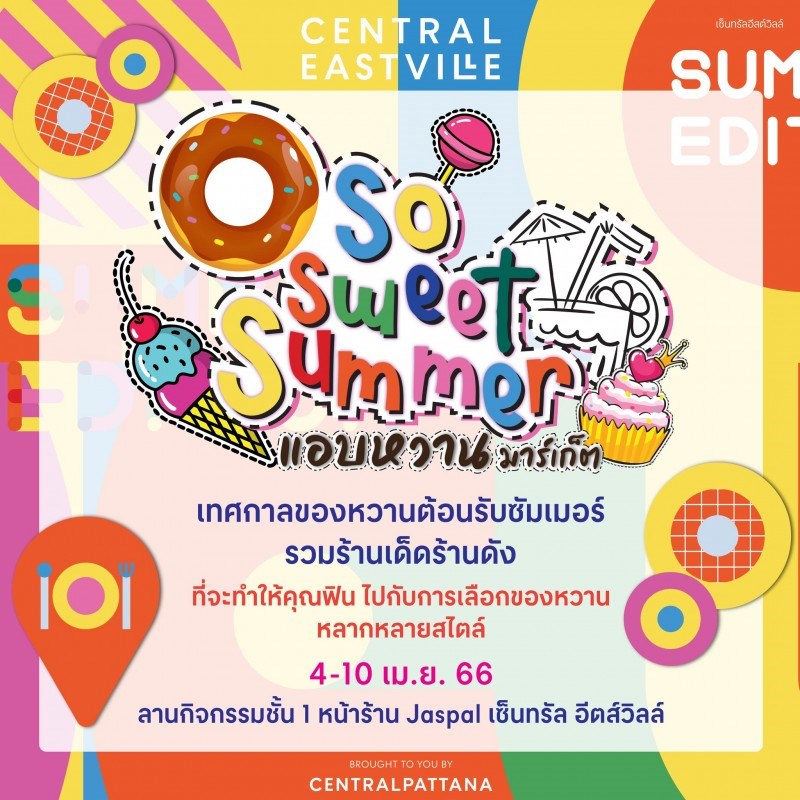แอบหวาน มาร์เก็ต กับเทศกาลของหวานต้อนรับซัมเมอร์ ที่มัดรวมร้านขนมหวานจากร้านดัง การันตีความหวานฉ่ำ ชื่นใจ ยิ่งอากาศร้อนๆแบบนี้ รับรองฟินสุด ๆ สายของหวานห้ามพลาด! วันที่ 4-10 เมษายน 66 ณ ลานโปรโมชั่น ชั้น 1 หน้า Jaspal เซ็นทรัล อีสต์วิลล์