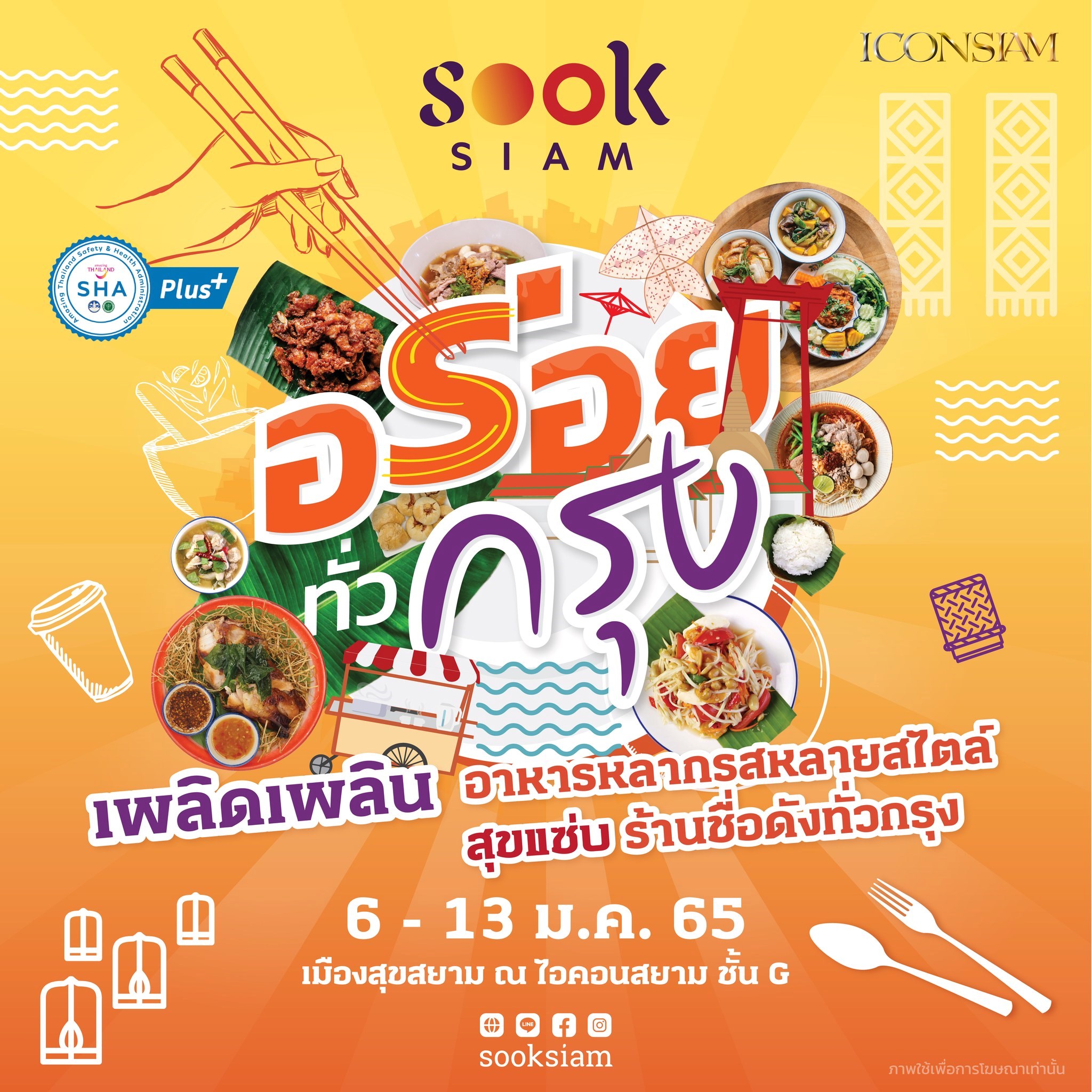 ให้คุณเพลิดเพลินกับอาหารหลากรสหลายสไตล์ #สุขแซ่บ ร้านชื่อดังทั่วกรุง.. มารวมไว้ในบรรยากาศสบายๆ แบบไทยๆ พร้อมให้บริการภายใต้มาตรการความสะอาดด้านสุขอนามัยและความปลอดภัยสูงสุด