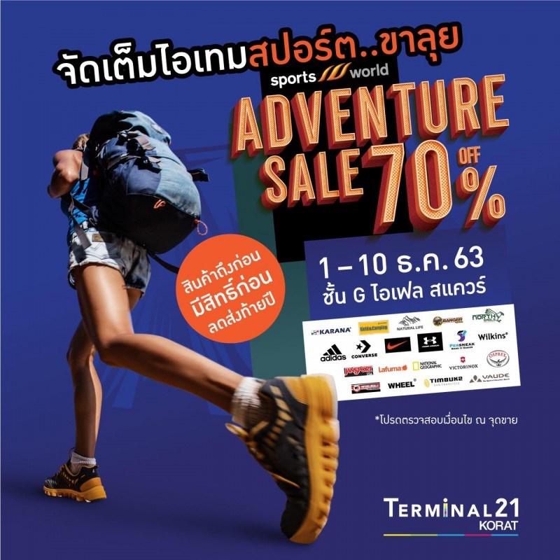 Sportworld Adventure Sale วันที่ 1 - 10 ธันวาคม 2563 ณ ชั้น G เทอร์มินอล21 โคราช ส่งท้ายปีกับงานที่สายลุยรอคอย Sportworld Adventure Sale ตอบโจทย์นักผจญภัย สายแคมป์ สายลุยทุกท่าน มาพร้อมกับโปรโมชั่นถึงก่อนมีสิทธิ์ก่อน และสินค้าราคาพิเศษลดสูงสุด70% ไม่ว่าจะเป็น รองเท้า กระเป๋าเป้ เต็นท์ และอุปกรณ์เดินป่า อีกมากมาย สายลุยตัวจริงต้องห้ามพลาด 1-10 ธันวาคมนี้ พบกันที่ ชั้น G เทอร์มินอล21 โคราช
