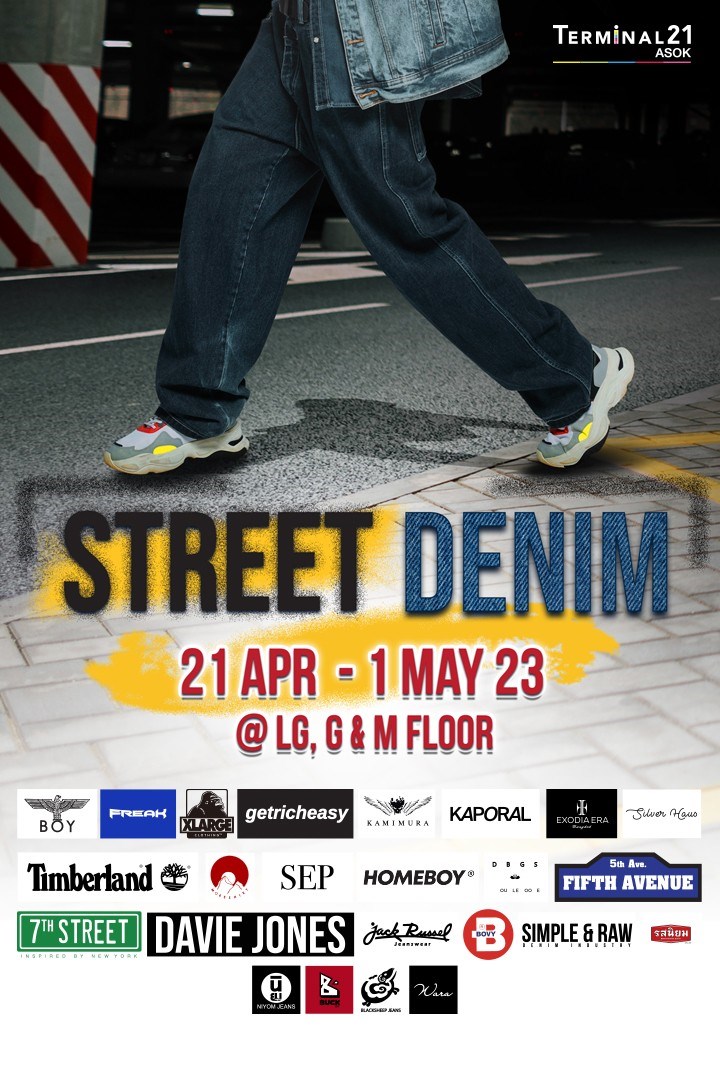พบกับเสื้อผ้าลุคสตรีทสุดคูล ราคาสุดปัง ที่รวมมาให้คุณช้อปมากมาย ไม่ว่าจะเป็นแบรนด์ BOY LONDON, KAMIMURA, FREAK, KAPORAL, X-LARGE CLOTHING, getricheasy, TIMBERLAND, HOMEBOY, EXODIA ERA, More Shirt, SEP, FIFTH AVENUE, 7th STREET, DBGS, Silver Haus, รสนิยม, นิยม Jeans, DAVIE JONES, BOVY, Jack Russel, SIMPLE & RAW, BUCK, Black sheep jeans, WARA เป็นต้น รับรองสายสตรีทต้องเลิฟ ตั้งแต่ 21 เม.ย. - 1 พ.ค. 66 ที่ชั้น LG, G, M ศูนย์การค้าเทอร์มินอล21 อโศก