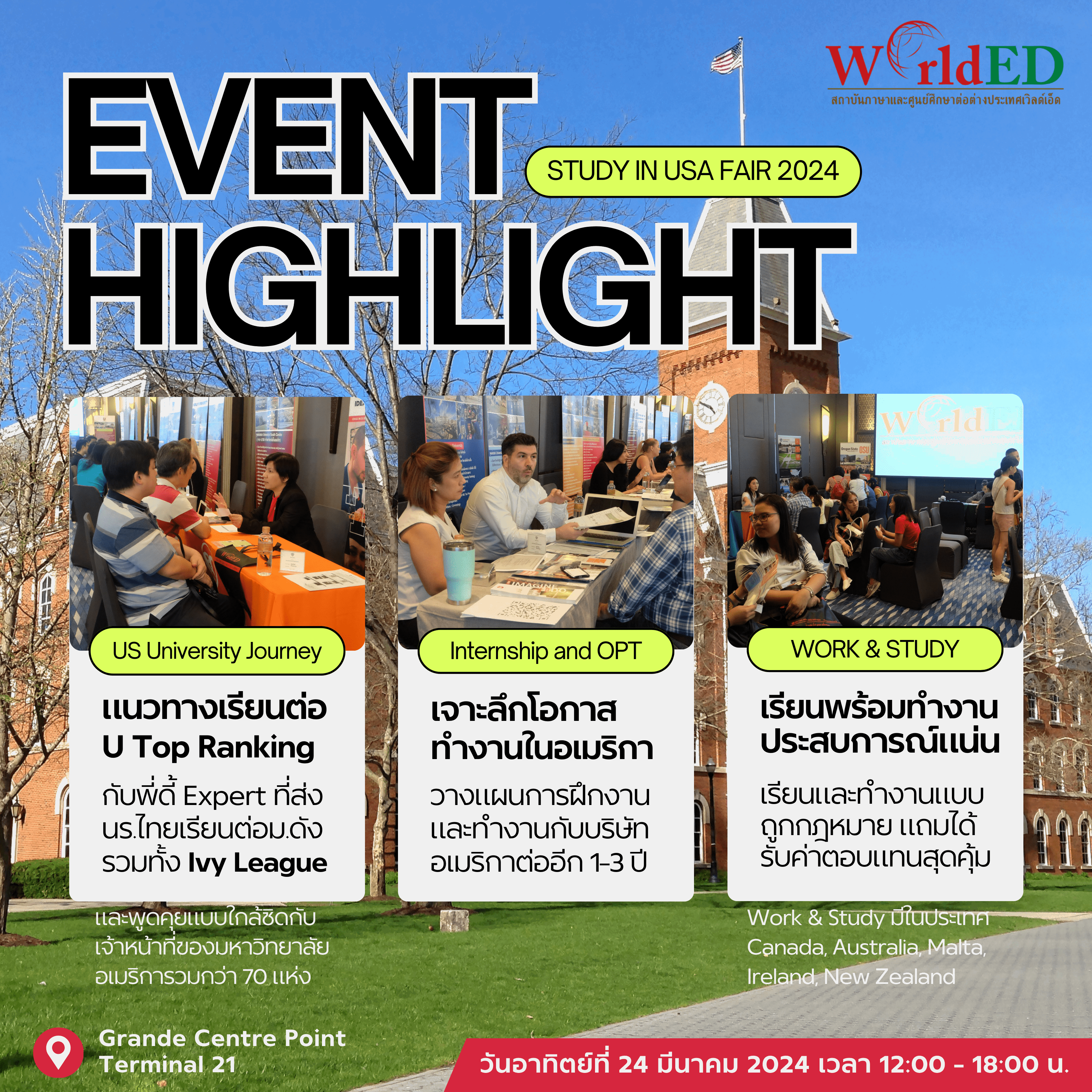 ✅ ปรึกษาเรียนต่ออเมริกากับพี่ ๆ WorldED และเจ้าหน้าที่มหาวิทยาลัยภายในงาน