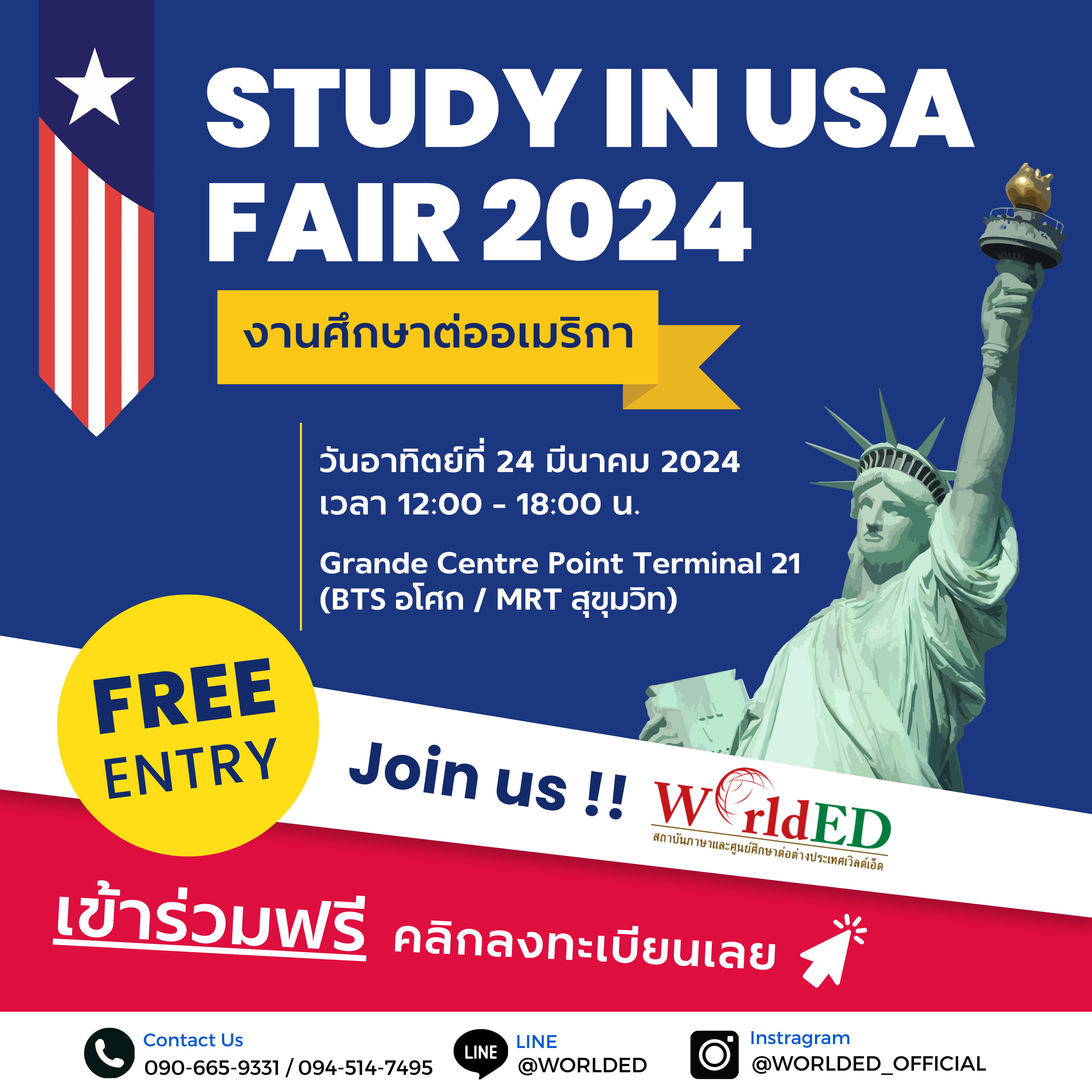 ห้ามพลาด! อยากเรียนต่ออเมริกาต้องมางานนี้! STUDY IN USA FAIR 2024 🌐 กับเส้นทางสู่ Top University มหาวิทยาลัยในฝันระดับโลก พบกับมหาวิทยาลัยชื่อดังและสถาบันภาษาชั้นนำจากอเมริการวมกว่า 70 แห่ง 🎓 ที่จะมาให้ข้อมูลในการเรียนต่อที่อเมริกา พิเศษสุด! สำหรับคนที่สนใจเรียนภาษาและโปรแกรม Work & Study มาพบกันที่งานนี้ได้เช่นกัน ครบ จบ ในที่เดียว 🔠🎯 ร่วมพูดคุย ปรึกษา เกี่ยวกับเกณฑ์การรับสมัคร ค่าใช้จ่าย พร้อมอัปเดตทุนการศึกษา กับเจ้าหน้าที่ของมหาวิทยาลัยโดยตรง แบบตัวต่อตัว ฟรี! พลาดงานใหญ่นี้แล้ว รออีกเกือบปีกว่าจะมีอีกนะ 😉💥
