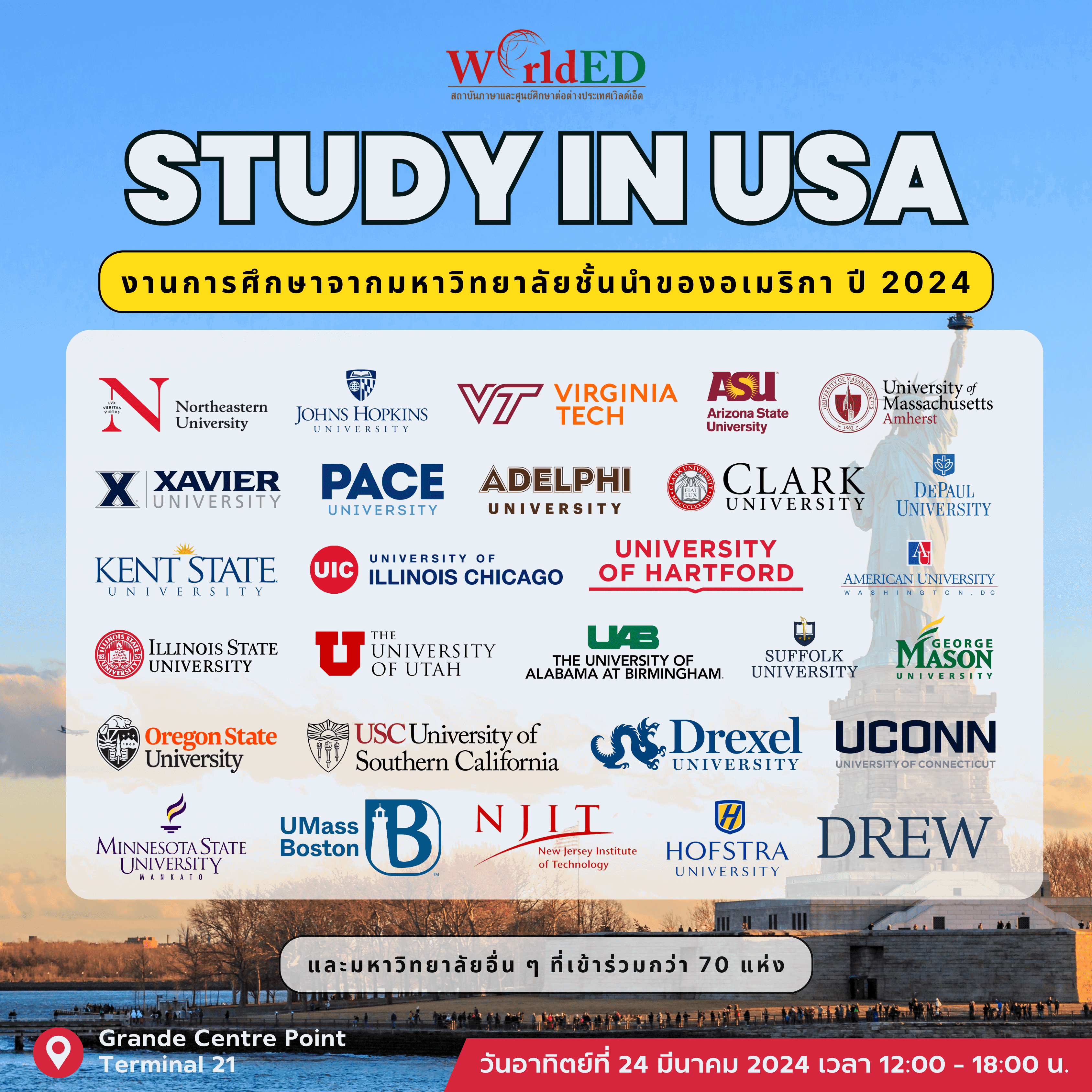 🚩 ภายในงานจะได้พบกับมหาวิทยาลัย/สถาบันชั้นนำจากอเมริกา