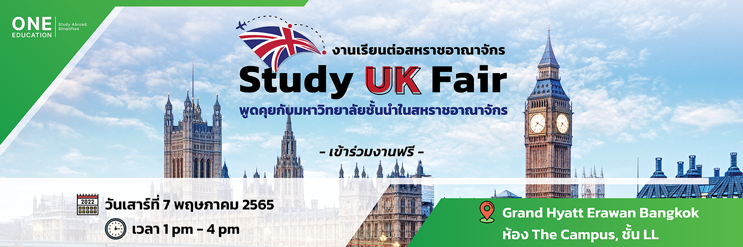 ห้ามพลาด! โอกาสดีสำหรับผู้ที่สนใจเรียนต่อสหราชอาณาจักรในปีการศึกษา 2565 งานที่จะได้พบปะและพูดคุยกับเจ้าหน้าที่มหาวิทยาลัยชั้นนำของสหราชอาณาจักรแบบตัวต่อตัวและผ่านระบบออนไลน์ รวมถึงยังได้ฟัง Alumni Talk ที่รุ่นพี่ศิษย์เก่าอังกฤษจะมาแชร์ประสบการณ์การเรียนต่อที่สหราชอาณาจักร