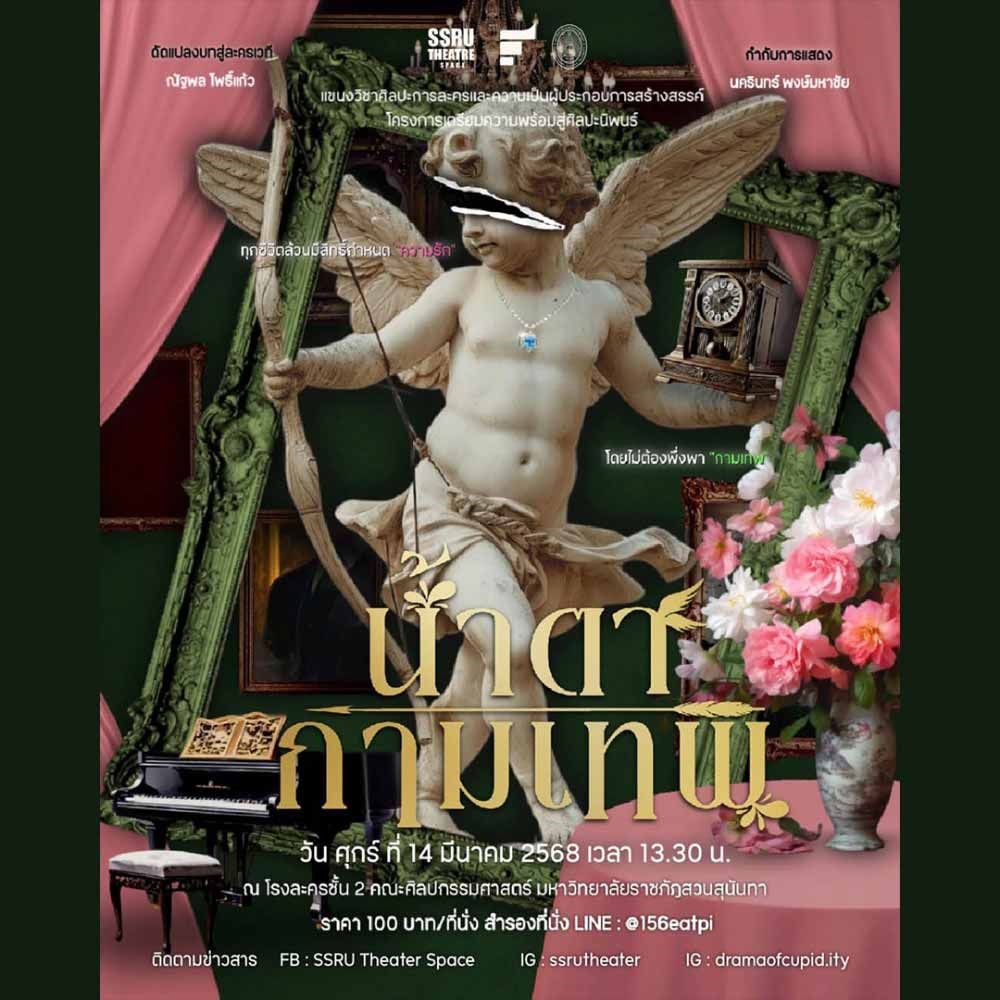 โครงการเตรียมความพร้อมสู่ศิลปนิพนธ์ประจำปี 2568 ขอนำเสนอ “น้ำตากามเทพ” ทุกชีวิตล้วนมีสิทธิ์กำหนด “ความรัก” ของตนเองโดยไม่ต้องพึ่งพา “กามเทพ” เมื่อ “หญิงย่า” ประมุขแห่งบ้านอัมราภรณ์เสียชีวิตลงอย่างเป็นปริศนา เหล่าบรรดาลูกหลานจึงต้องร่วมมือกันไขคดี งานนี้ทุกคนต้องใส่หน้ากาก ต้องตีหน้าเศร้า ต้องปลอมตัว ต้องงัดทุกกลยุทธ์เพื่อหลอกล่อให้คนร้ายตัวจริงเผยออกมา เรื่องราวน้ำเน่ายุงชุม ชีวิตจริงยิ่งกว่าละครจึงเริ่มต้นขึ้น!