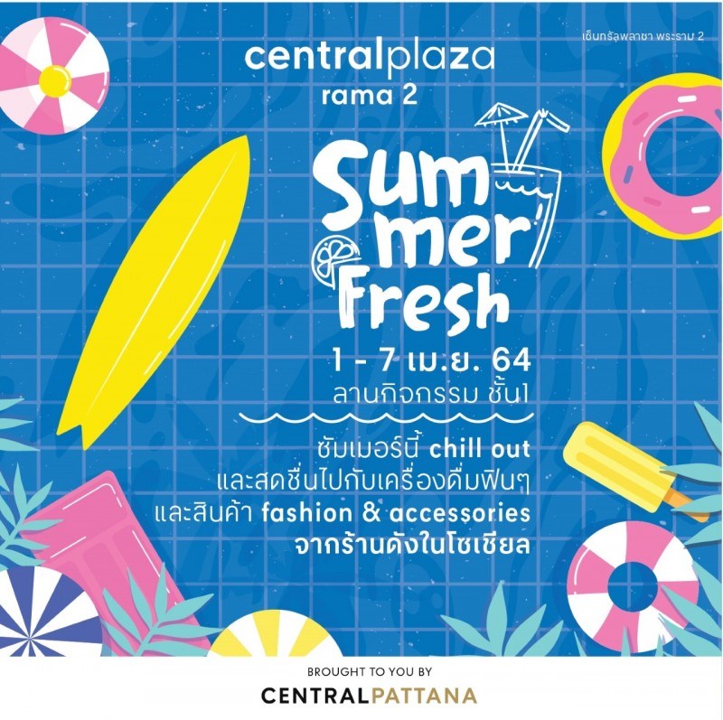 Summer Fresh วันที่ 1 - 7 เมษายน 2564 ณ ลานกิจกรรม ชั้น 1 เซ็นทรัลพลาซา พระราม 2 ซัมเมอร์นี้ Chill Out กับงาน Summer Fresh สดชื่นไปกับเครื่องดื่มฟินๆ จากร้านดังในโซเชียล อาทิ น้ำส้ม D-Jung จากฮั่น-จียอน ไอติมไข่แข็ง จากตี๋ดอกสะเดา นิอ่าง ตลาดพลู ไอศครีมฮอกไกโด Uholic แฟรนซ์ฟรายราดชีส Café’ Mungkornbin Brix dessert bar และช้อปกับสินค้า Fashion & Accessories ดีไซน์เก๋จาก IG Chama Thing, ชุดว่ายน้ำ Loinclothshop Wimpoolfloats และเสื้อผ้ามัดย้อมจากมูลนมวัว PHOOM HANDICRAFT
