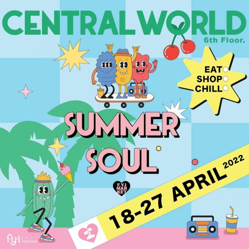 สดใสต้อนรับซัมเมอร์ ไปกับงาน summer soul งานคิ้วท์ ๆ ที่คนคิ้วท์ ๆ ไม่ควรพลาด พบกับร้านอาหาร ขนม และสินค้าแฟชั่นเด็ด ๆ สุดปัง กันได้ที่ใจกลางกรุงแบบจัดเต็ม ณ เซ็นทรัลเวิลด์ ใครกำลังมองหาร้านขนมร้านเด็ด อาหารร้านดัง มาพร้อมเครื่องดื่มสุดสดชื่น ไอศกรีมเย็น ๆ และยังมีแฟชั่นสุดชิค บอกเลยว่าพลาดไม่ได้กับงานที่รวมทุกอย่างไว้ให้เลือกช้อปครบจบในที่เดียวไปเลย เดินทางสะดวกใกล้รถไฟฟ้าบีทีเอส