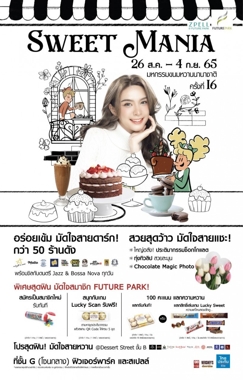 Sweet Mania 2022 วันที่ 26 สิงหาคม - 4 กันยายน 2565 ณ ศูนย์การค้าฟิวเจอร์พาร์ค ศูนย์การค้าฟิวเจอร์พาร์ค และสเปลล์ เอาใจเหล่าช็อกโกแลตเลิฟเวอร์ จัดงาน "Sweet Mania 2022" ชวนดื่มด่ำกับเทศกาลขนมหวานนานาชาติ ภายใต้ concept "Chocolate Trail" ถนนสายช็อกโกแลต ที่ได้นำช็อกโกแลตมารังสรรค์เป็นขนม พร้อมด้วยบรรยากาศร้านช็อกโกแลตชื่อดัง 10 อันดับในกรุงเทพฯ มาร่วมสร้างประสบการณ์สุด Exclusive ผ่านขนมที่ทำขึ้นด้วยช็อคโกแลต นอกจากนี้ยังมีร้านขนมนานาชาติที่ร่วมรังสรรค์ช็อกโกแลตให้กลายเป็นเมนูสุดพิเศษจำนวนกว่า 50 บูธ อีกทั้งภายในงานยังมีการจัดแสดงประติมากรรมช็อกโกแลตขนาดใหญ่ พร้อมด้วย Chocolate Magic Photo ซึ่งเป็นจุดถ่ายรูปสุดล้ำ จัดวางด้วยขนมหวานที่รังสรรค์จากช็อกโกแลต เพื่อให้ผู้เข้าร่วมงานได้สัมผัสกับประสบการณ์สุดประทับใจ และร่วมสนุกกับการถ่ายภาพภายในงานลุ้นรับของรางวัลอีกมากมาย โดยงาน "Sweet Mania 2022" จะจัดขึ้นระหว่างวันที่ 26 สิงหาคม - 4 กันยายน 2565 ณ Cascata ชั้น G ศูนย์การค้าฟิวเจอร์พาร์ค และ Zpotlight ชั้น G สเปลล์ สำหรับงาน "Sweet Mania 2022" สายที่ชื่นชอบช็อกโกแลตห้ามพลาดโดดเด็ดขาด นับเป็นงานเทศกาลขนมหวานนานาชาติที่ได้รวบรวมความอร่อย ความครีเอทีฟ และมนต์เสน่ห์ของช็อกโกแลตไว้ได้อย่างลงตัว พร้อมด้วย 10 ร้านช็อกโกแลตชื่อดังในกรุงเทพฯ ที่ได้คัดสรรมาไว้เพื่องานนี้โดยเฉพาะ ไม่ว่าจะเป็นร้าน Midnight a Cocoa, Molto, Christoph Chocolate, Square2 Chocolate, Yoko Donut and John's Lemon, Choco Toss, Memorize Brownie, Insa Sweets, โกโก้ร้านไอ้ต้น, รสโบราณสเตชั่น เป็นต้น อีกทั้งยังมีบูธร้านค้าอื่นๆ อีกกว่า 50 ร้านค้า ที่มาร่วมรังสรรค์เมนูต่างๆ โดยในแต่ละเมนูจะมีรสชาติช็อกโกแลตเป็นส่วนประกอบ อาทิ Cake, Croissant, Cookie, Macaron, Ice Cream, Mochi และ Tart เป็นต้น คุ้มสุดฟิน! กับโปรโมชั่นร้านขนมหวาน ที่ Dessert Street ชั้น B อาทิ Mikazuki ซื้อ 5 แถม 1, Fukumatcha ลด 15 บาท เมนู Hojicha, O-Li-No Crepe&Tea เพียง 119.- เมนู Duo Set (ปกติ 170.-), Secret Recipe คัพเค้ก 5 ฟรี 1 / เค้กชิ้น 2 ฟรี 1 เป็นต้น พิเศษเฉพาะสมาชิก FUTURE PARK รับฟรี Ferrero Rocher เมื่อสมัครเป็นสมาชิกใหม่ หรือร่วมสนุกเล่นเกม Lucky Scan สแกน QR Code ที่จุดประติมากรรมให้ครบตามเงื่อนไข หรือสำหรับผู้ที่มีคะแนนสะสม สามารถใช้ 100 คะแนน แลกรับสิทธิ์เล่นเกม Lucky Sweet สนุกตักช็อกโกแลตหลากชนิด หรือใช้ 100 คะแนน แลกรับ Ferrero Rocher ได้ 1 ชิ้นทันทีมาร่วมสัมผัสประสบการณ์สุดฟินบนพื้นที่ของช็อกโกแลต ได้ตั้งแต่วันที่ 26 สิงหาคม - 4 กันยายน 2565 ณ Cascata ชั้น G ศูนย์การค้าฟิวเจอร์พาร์ค และ Zpotlight ชั้น G สเปลล์