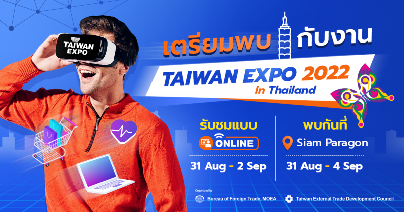 Taiwan Expo 2022 in Thailand วันที่ 31 สิงหาคม - 4 กันยายน 2565 เวลา 10.00 - 21.00 น. ณ ศูนย์การค้าสยามพารากอน เตรียมพบกับ Taiwan Expo 2022 in Thailand ปีนี้มาพร้อมกับงาน Onsite ให้ทุกคนสัมผัสกับอย่างใกล้ชิด ณ ลานแฟชั่นฮอลล์ ชั้น 1 สยามพารากอน ในวันที่ 31 สิงหาคม 2565 - 4 กันยายน 2565 เวลา 10.00 - 21.00 น. สำหรับใครที่อยู่ไกล ไม่ต้องกังวลใจ พบกับงานรูปแบบออนไลน์ ไปพร้อมกันได้ ในวันที่ 31 สิงหาคม - 2 กันยายน 2565 thailandexhibition ปักหมุดติดตาม