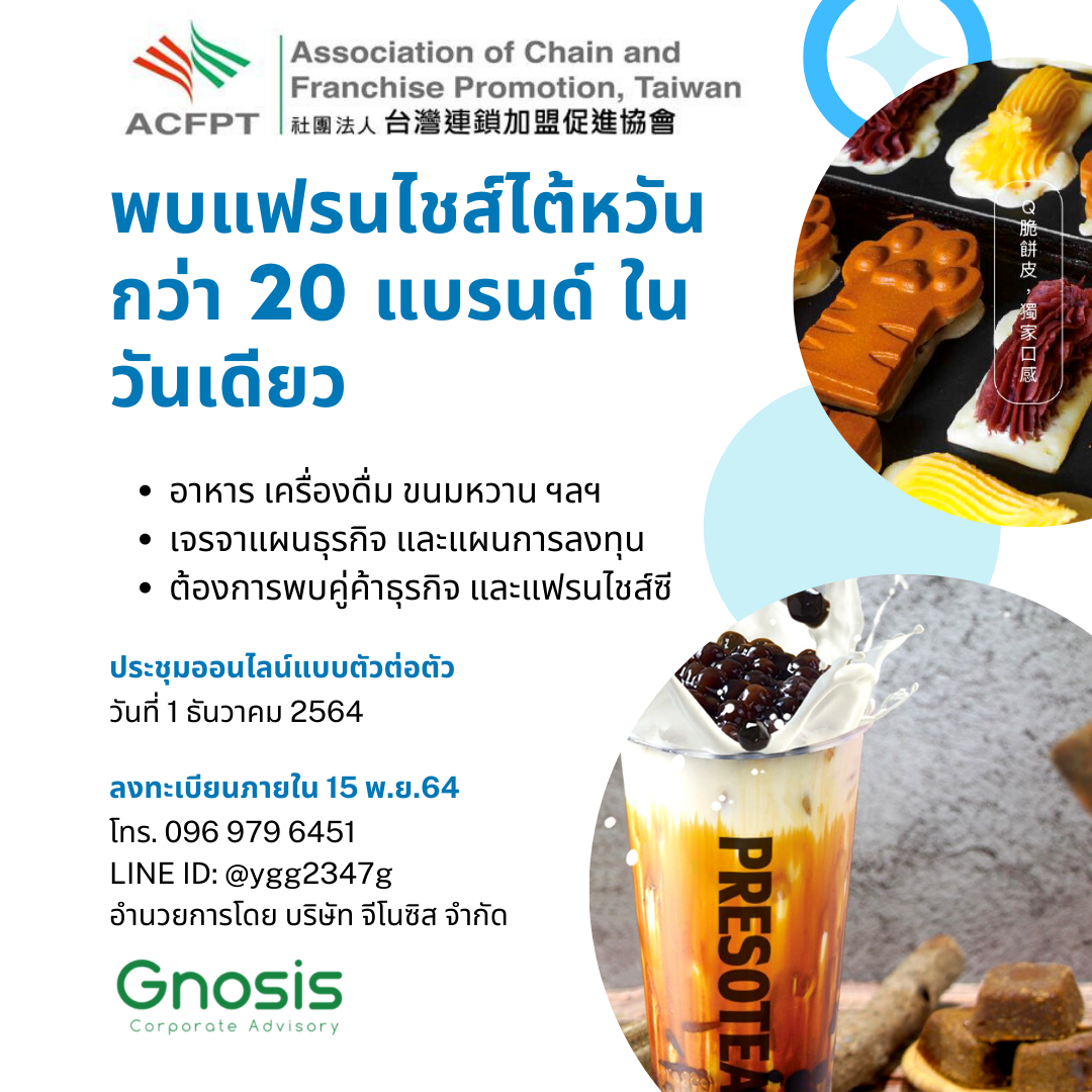 แฟรนไชส์ไต้หวัน จับคู่เจรจาธุรกิจ ออนไลน์ 2021