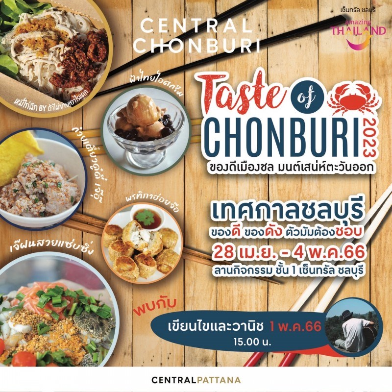 งานเทศกาลชลบุรี ของดีเมืองชล มนต์เสน่ห์ตะวันออก Taste of Chonburi 2023 "รวมของดี ของดัง ตัวมัม ต้องชอบ!" ตั้งแต่วันที่ 28 เมษายน - 4 พฤษภาคม 2566
