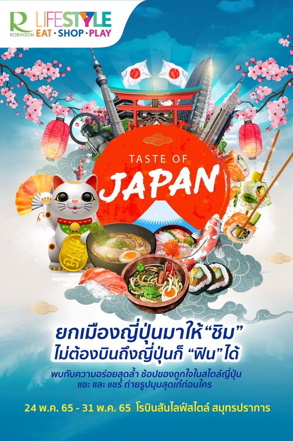 ศูนย์การค้าโรบินสันไลฟ์สไตล์ ในเครือเซ็นทรัล รีเทล ผนึกกำลังพันธมิตรร้านอาหาร ร้านค้า สไตล์ญี่ปุ่นชั้นนำ เอาใจเหล่าครอบครัวเจแปนเลิฟเวอร์ให้ได้ฟินกันอย่างต่อเนื่อง กับงานเทศกาลญี่ปุ่นสุดยิ่งใหญ่แห่งปี "โรบินสันไลฟ์สไตล์ เทสต์ ออฟ เจแปน 2022 (Taste of Japan 2022)" ที่ยกดินแดนอาทิตย์อุทัยมามัดรวมความฟิน ทั้งอาหารคาวหวานรสเลิศ ร้านของฝาก และบรรยากาศการตกแต่งสุดว้าว! เพื่อให้ครอบครัวเจแปนเลิฟเวอร์ได้ให้หายคิดถึง ซึ่งพร้อมจะแลนดิ้งไปอีก 3 สาขา ไม่ว่าจะเป็น สาขาสมุทรปราการ วันที่ 24 พ.ค. 65 - 31 พ.ค. 65, สาขาร้อยเอ็ด วันที่ 3 มิ.ย. 65 - 10 มิ.ย. 65 และสาขาบ้านฉาง ระยอง วันที่ 17 มิ.ย. 65 - 24 มิ.ย. 65 ภายใต้มาตรการด้านสุขอนามัย Robinson Lifestyle Clean & Safe ที่เคร่งครัดขั้นสูงสุด ใกล้ที่ไหน ไปเช็คอินที่นั่นได้เลย! สายกิน ฟินกับอาหารญี่ปุ่นคาว - หวาน อันเลื่องชื่อ เริ่มที่เมนูขนมหวาน ไม่ว่าจะเป็น "Taiyaki" ขนมไทยากิรูปทรงปลาแสนอร่อยที่ทำจากแป้งสาลี และนำไปย่างในพิมพ์เหล็กจนเป็นรูปปลา พร้อมสอดไส้ด้วยถั่วแดงกวน และคัสตาร์ดครีม "Shiroi Koibito" ขนมชิโร่ย โคอิบิโตะ ของฝากประจำจังหวัดฮอกไกโด ขนมกรุบกรอบลักษณะคล้ายคุกกี้สอดไส้ด้วยช็อกโกแล็ตที่หอมละมุน ด้วยรสชาติที่อร่อยเป็นเอกลักษณ์นี้จึงได้รับความนิยมมายาวนานกว่า 40 ปี "Rare Cake" แรร์เค้กแสนอร่อยจากวัตถุดิบธรรมชาติสุด พรีเมียมแบรนด์ Festivalo (เฟสติวาโล่) ตัวขนมทำมาจาก Karaimo (คาราอิโม) หรือมันหวาน ที่ปลูกอย่างพิถีพิถัน สดใหม่จากธรรมชาติ ปราศจากสารแต่งสีและวัตถุกันเสีย มีให้เลือก 3 รสชาติ ทั้ง "Karaimo Rare Cake Festivalo Lovely" (คาราอิโม แรร์เค้ก เฟสติวาโล่ เลิฟลี่), "Karaimo Rare Cake Matcha Au Lait" (คาราอิโม แรร์เค้ก มัชชะ โอเล) และ "Sweet Potato Cake" (สวีทโปเตโต้เค้ก) หรือจะเป็น "ขนมปังฮอกไกโด" ขนมปังครีมสดจากร้าน Little C (ลิตเติ้ลซี) ก็มีมาให้ลองลิ้มชิมรสกันแบบจุใจ และห้ามพลาด! กับขนมสุดฮิต "Daifuku" ขนมไดฟูกุ สตรอเบอรี่ญี่ปุ่น เนื้อนุ่ม ๆ แป้งนุ่มยืดพิเศษ และช็อคโกแลต "ROYCE" (รอยส์) ที่ส่งตรงจากเมืองฮอกไกโด ของฝากอันดับ 1 ของญี่ปุ่น และขบวนขนมญี่ปุ่นนานาชนิดอีกมากมายจาก Tops Market (ท็อปส์ มาร์เก็ต) ต่อด้วยเมนูอาหารสุดโปรด ทั้ง "Takoyaki" (ทาโกะยากิ) ลูกชิ้นหมึกยักษ์ ที่ทำจากวัตถุดิบที่ส่งตรงจากประเทศญี่ปุ่น อร่อยแท้แบบต้นตำรับมาเอง พร้อมสนุกไปกับกิจกรรม Workshop สอนทำซูชิ โชว์ทักษะการแล่ปลาสไตล์ญี่ปุ่นแบบต้นตำรับ สายช้อป รวบรวมร้านของฝากที่จำลองบรรยากาศถนน "Nakamise" (นากามิเซะ) มาให้สายช้อปได้ช้อปกันแบบจัดเต็ม พร้อมบริการให้เช่าชุดกิโมโน ยูกาตะ และฮากามะ เพียงสายช้อปแสดงใบเสร็จ (ทั้งศูนย์การค้าและห้างสรรพสินค้า) มูลค่า 1,000 บาท ขึ้น
