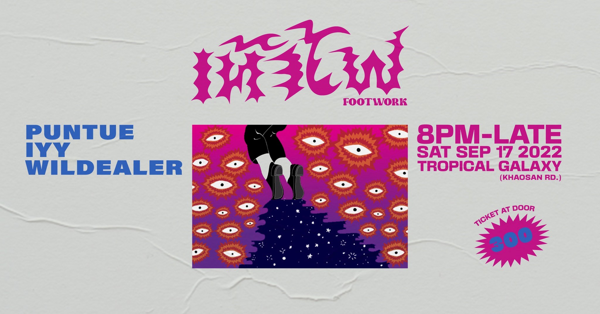 กลับมาพบกัญอีกครั้งกับ คณะเท้าไฟ footwork เต็มระบบ ณ ร้าน Tropical Galaxy ถนนข้าวสาร ครั้งนี้เราจะกลับมาในธีมป่าดงมนดำเต้นรำทั้งคืน เครียตารางให้ว่างแล้วมาหลงป่าคอนกรีตกันในคืนวันเสาร์ มาจุดให้เท้าเป็นไฟตั้งแต่เวลา 20.00 เป็นต้นไป ยาวไปจนร้านปิด ครั้งนี้สมาชิคชาวคณะมากันพร้อมหน้าทั้ง IYY, Puntue และ Wildealer รับประกันความเซิ้งเหมือนเดิม