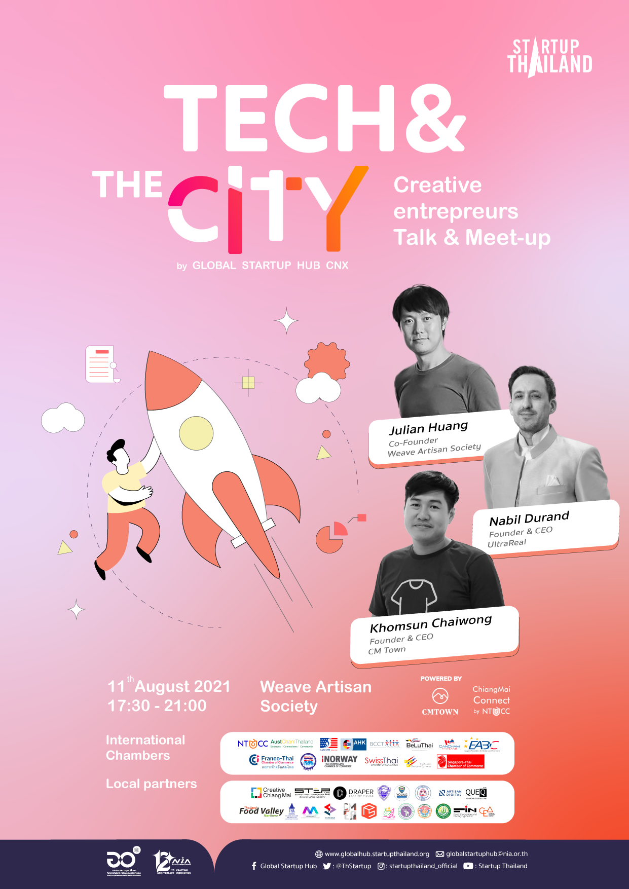 Join us at the fifth edition of Tech & The City by Global Startup Hub CNX, supported by NIA & Startup Thailand, powered by CM Town & Chiang Mai Connect by NTCC.
