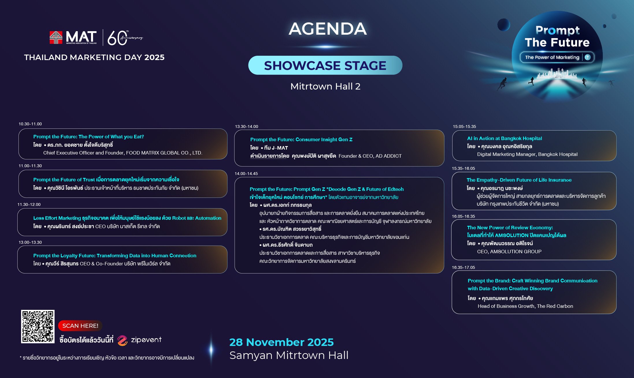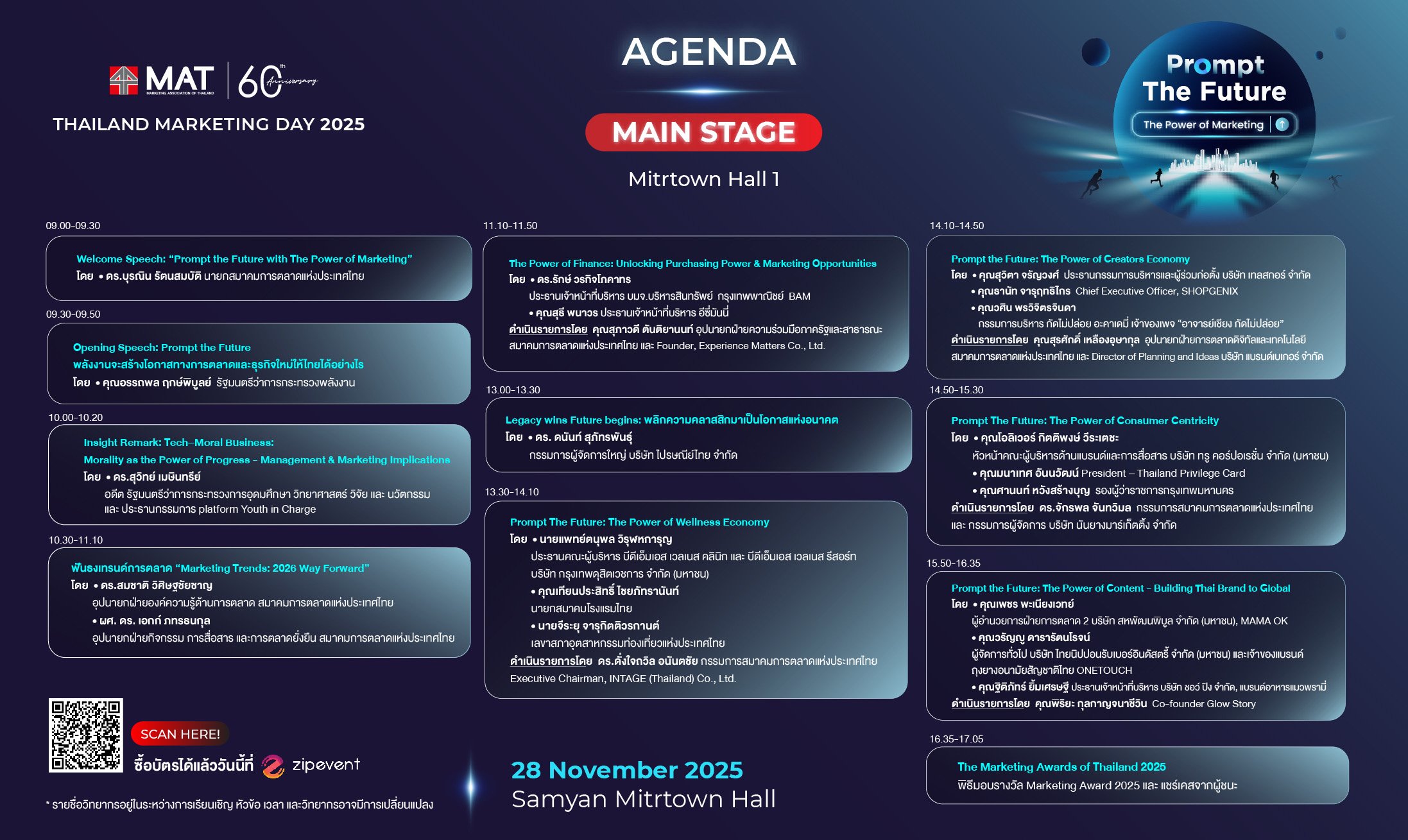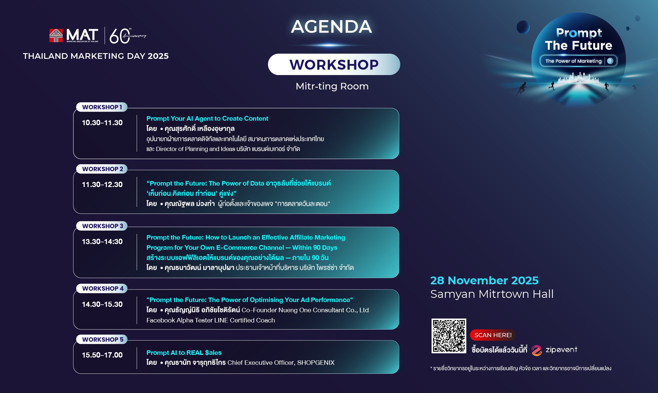 - แจ้งเปลี่ยนชื่อได้ที่อีเมล support@zipeventapp.com ภายในวันที่ 10 พฤศจิกายน 2568 เวลา 18.00 น.