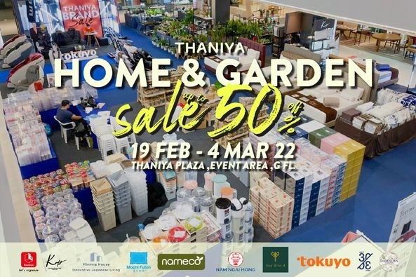 19 กุมภาพันธ์ - 4 มีนาคม 2565 Event Area ชั้น G ธนิยะพลาซา อาคาร Atrium (ตึกหลัง) ช็อปเพลินๆกับของใช้ในบ้านและต้นไม้ เตียง เครื่องนอน เฟอร์นิเจอร์ ของใช้ในบ้าน และต้นไม้ หลายหลายแบรนด์ อย่าง Minimal House Japanese Living, BoxBox, Komfy, Mochi Futon, Nameco, Nam Ngai Hong, Nice&Solid, Tokuyo, SartySarty และ Damnoen Garden