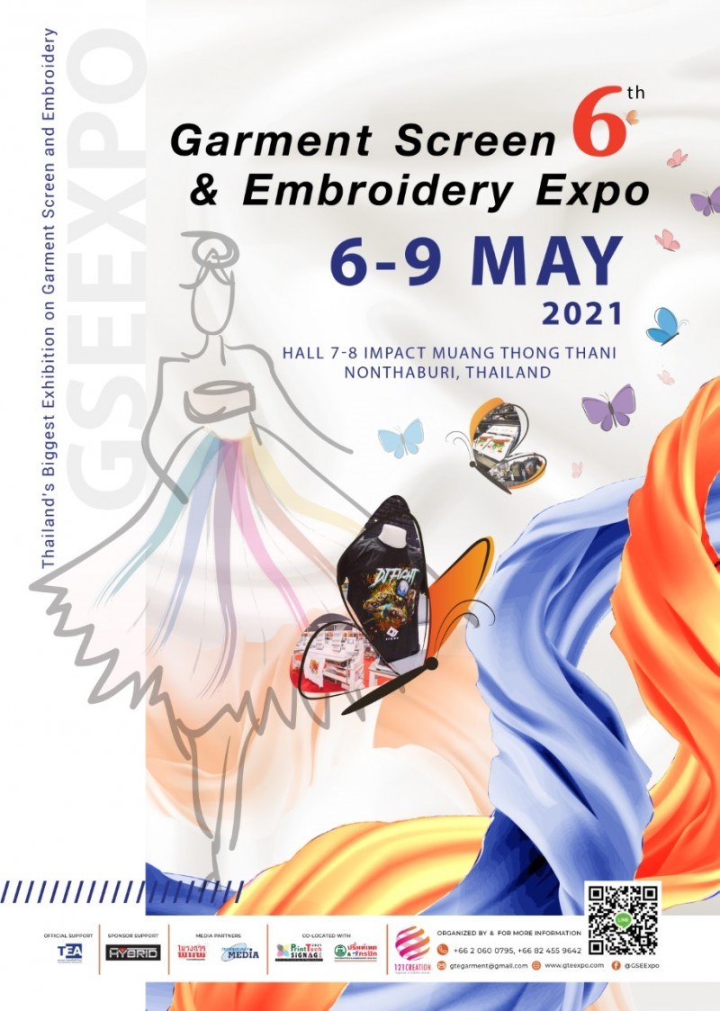 The 6th Garment Screen & Embroidery 2021 วันที่ 4 - 7 มีนาคม 2564 ณ Hall 9 - 10 Impact เมืองทองธานี เป็นการรวมตัวของผู้ประกอบการไทย กลุ่ม เครื่องจักร ที่ใช้ในอุตสาหกรรมเสื้อผ้าสิ่งทอ อาทิเช่น เครื่องพิมพ์บนผ้า, กลุ่มจักรปัก, กลุ่มจักรเย็บผ้า, กลุ่มจักรเย็บเครื่องหนัง กลุ่มงานทรานเฟอร์, กลุ่มแพคเกจจิ้งและวัสดุ, อุปกรณ์ที่ใช้ในวงการอุตสาหกรรมงานผ้าและสิ่งทอมารวมตัวกัน อีกทั้ง ผู้ประกอบการด้านธุรกิจเสื้อผ้า สิ่งทอ จะได้รับข้อมูลข่าวสารอันทันสมัย จากองค์กรต่างๆที่เข้าร่วมงานในครั้งนี้ เพื่อนำมาประยุกต์ และปรับใช้ในการทำงานของแต่ละองค์กร เพื่อเป็นการลดต้นทุน และค่าใช้จ่ายในการผลิตบริหารภายในองค์กร พร้อมพัฒนาผลิตภัณฑ์ ต่อยอดสร้างงานอย่างดี มีคุณภาะเทียบเท่าตลาดสากล วัสดุประสงค์ เพื่อกระตุ้นเศรษฐกิจด้านการค้า ในระดับธุรกิจ จากผู้ประกอบการ (B2B), ผู้ประกอชการถึงผู้บริโภค(B2C) เพื่อเพิ่มโอกาสทางธุรกิจด้านการขาย และเข้าถึงกลุ่มเป้าหมาย ได้โดยตรง ภายใต้ Concept "Innovative Technologies" ประชาสัมพันธ์สินค้า เพื่อตรอกย้ำแบรนด์ (Brand) ให้เป็นที่รู้จักมากยิ่งขึ้น เปิดตลาดด้านการค้า และต่อยอดทางธุรกิจกับฐานลูกค้ากลุ่มใหม่ และพบปะแลกเปลี่ยนแนวความคิด กับนักธุรกิจแนวหน้า กิจกรรม Work Shop สำหรับผู้เข้าชมงาน ที่สนใจมองหาธุรกิจใหม่ รายละเอียดผู้ร่วมออกงาน Exhibition กลุ่มจักรปัก, จักรเย็บผ้า, จักรเย็บหนัง, จักรอตสาหกรรม กลุ่มเครื่องพิมพ์ผ้าดิจิตอล, พิมพ์สกรีนผ้า, พิมพ์โรตารี่ กลุ่มงานรีด ถ่ายเทความร้อน Heat Transfer กลุ่มเสื้อผ้าสิ่งทอสำเร็จรูป และสินค้าจากงานผ้า ธุรกิจงานบริการ เช่น อุปกรณ์และวัสดุตกแต่ง, วัสดุในการตัดเย็บสิ่งทอ, เส้นด้าย, วัสดุการพิมพ์ และอื่นๆ กลุ่มเป้าหมายที่มาเดินงาน ผู้ประกอบการ เจ้าของกิจการ โรงงานเสื้อผ้าสิ่งทอ, โรงงานเครื่องหนัง ทั่วประเทศ ฝ่ายจัดซื้อด้านงานการ์เม้นท์จากในประเทศและต่างประเทศ ประชาชนทั่วไป ผู้จัดจำหน่ายทั้งขายส่งและขายปลีก กลุ่มธุรกิจ SME และประชาชนที่มองหาอาชีพเสริม
