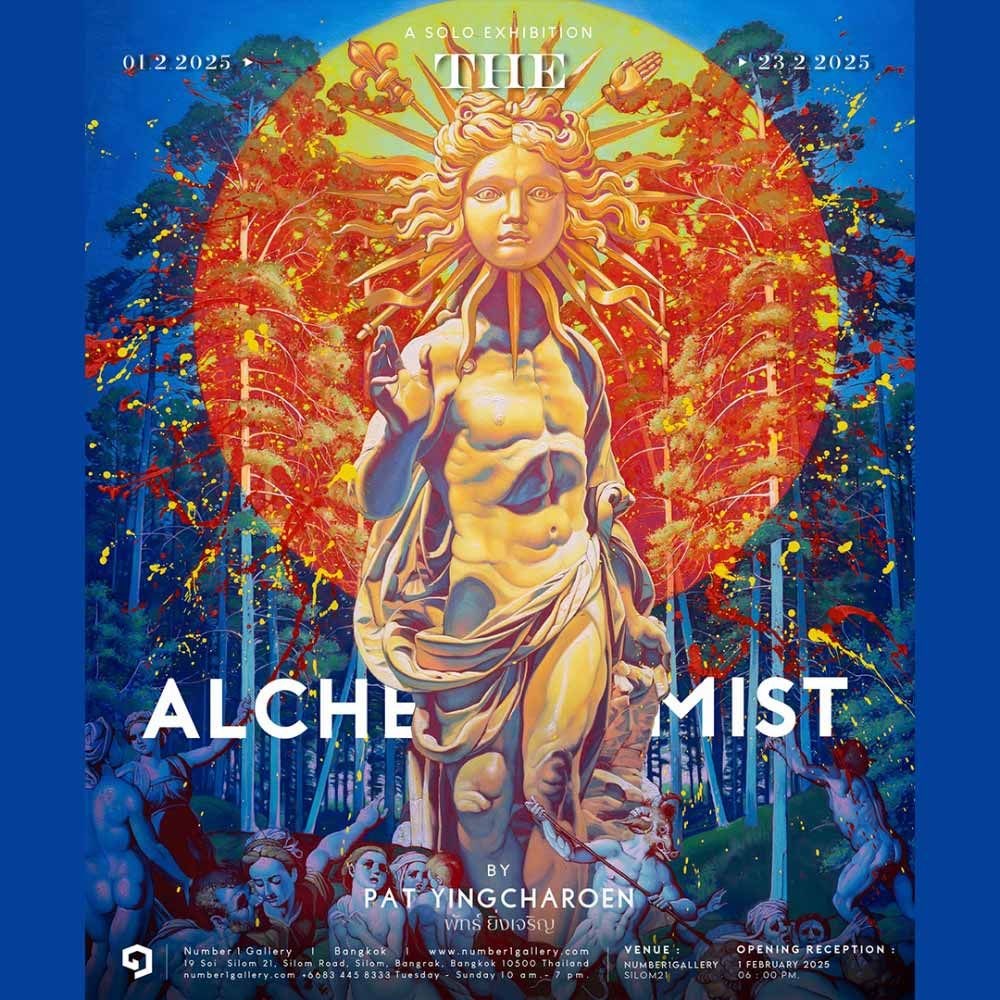The Alchemist นิทรรศการเดี่ยวครั้งที่ 7 ของ พัทธ์ ยิ่งเจริญ นิทรรศการที่ว่าด้วยการเชื่อมร้อยกระบวนการสร้างงานจิตรกรรมของศิลปินกับประวัติศาสตร์อันไกลโพ้นของการเล่นแร่แปรธาตุในยุคบรรพกาล สำหรับศิลปินแล้ว นักเล่นแร่แปรธาตุมิได้เป็นเพียงผู้ที่ถูกมอมเมา และหมกมุ่นอย่างมืดบอดอยู่กับอวิชชา หากแต่เป็นคนที่พยายามจะเข้าใจโลกของวัตถุ และสสารอย่างลึกซึ้ง ไม่ใช่เพียงเพื่อเปลี่ยนสถานะของวัตถุให้กลายเป็นสิ่งที่ทรงคุณค่า หากแต่มันเป็นความพยายามพิสูจน์ถึงปรัชญา หรือระเบียบของธรรมชาติบางประการที่โอบรับโลกที่ปั่นป่วน วุ่นวาย และสิ้นหวังใบนี้ไว้ ในลักษณะเดียวกันนั้นเอง...