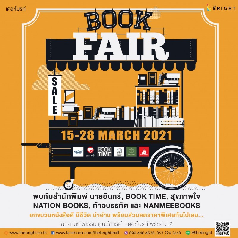 The Bright Book Fair วันที่ 15 - 28 มีนาคม 2564 ณ ลานกิจกรรมกรรม ศูนย์การค้าเดอะไบรท์ พระราม 2 พบกับสำนักพิมพ์ นายอินทร์, BOOK TIME, สุขภาพใจ, NATION BOOKS, ก้าวบรรทัด และ NANMEEBOOKS ยกขบวนหนังสือดี มีชีวิต น่าอ่าน พร้อมส่วนลดราคาพิเศษกันไปเลย