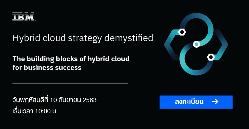 ไอบีเอ็ม ขอเรียนเชิญท่านเข้าร่วมงานสัมมนาออนไลน์ The Building Blocks of Hybrid Cloud for Business Success เพื่อทำความเข้าใจเกี่ยวกับโลกของ Container, Kubernetes และ Microservices พร้อมค้นหาว่าจะวางรากฐานสำหรับคลาวด์อย่างไรให้ประสบความสำเร็จ ครอบคลุมไปถึงประสิทธิภาพ การรองรับการเพิ่มขึ้นหรือลดลงของข้อมูล ความปลอดภัย การสำรองข้อมูล และการกู้คืนข้อมูล