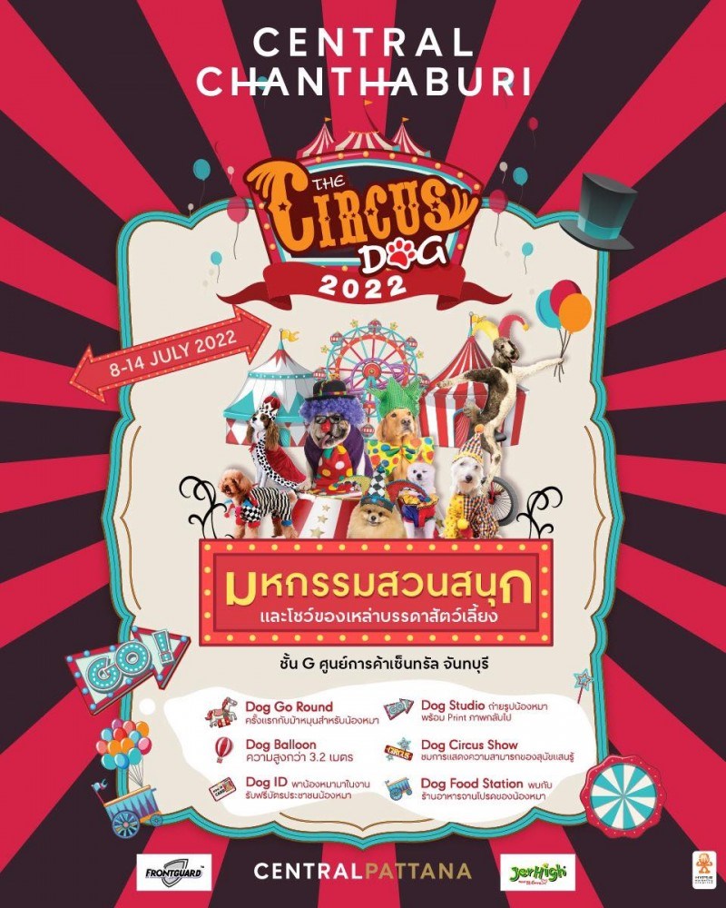 The Circus Dog 2022 เตรียมพบกับมหกรรมสวนสนุกและโชว์ของเหล่าบรรดาสัตว์เลี้ยง ภายในงานพบกับกิจกรรมมากมาย อาทิ ชมความสามารถของน้องหมากับการแสดง Circus Dog Show Dog Go Round ม้าหมุนสำหรับน้องหมา Dog Club การรวมตัวของน้องหมาหลากหลายสายพันธุ์ Dog Magazine และ Dog ID กิจกรรมถ่ายรูปสำหรับน้องหมา Dog Food Truck อาหารพิเศษสำหรับน้องหมา Workshop สร้อยคอน้องหมา บูธขายของสำหรับสัตว์เลี้ยงในราคาพิเศษ วันที่ 8 - 14 ก.ค. 65 ณ ลานกิจกรรม ชั้น G เซ็นทรัลจันทบุรี