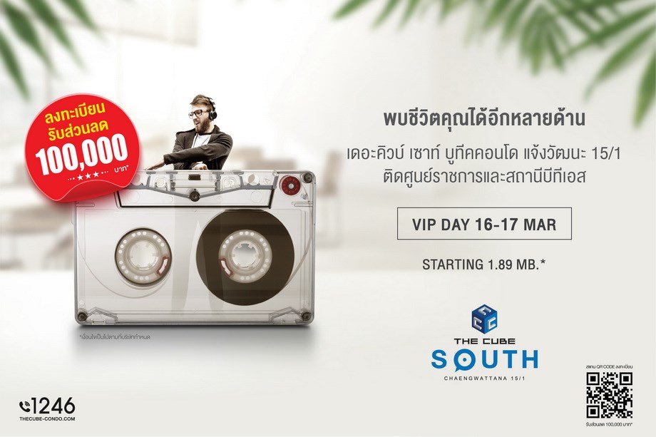 เดอะคิวบ์ เซาท์ แจ้งวัฒนะ คอนโดสไตล์รีสอร์ตพร้อมจัด VIP Day พบกัน 16-17 มี.ค.นี้
