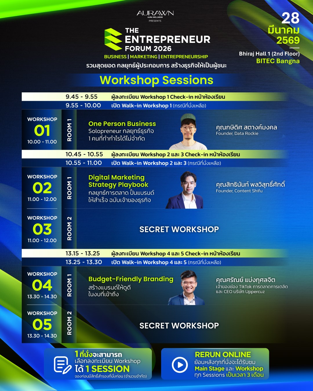 | 13.30 - 14.30 | Budget-Friendly Branding สร้างแบรนด์ให้ดูดี ในงบที่เข้าถึง | AVAILABLE |
