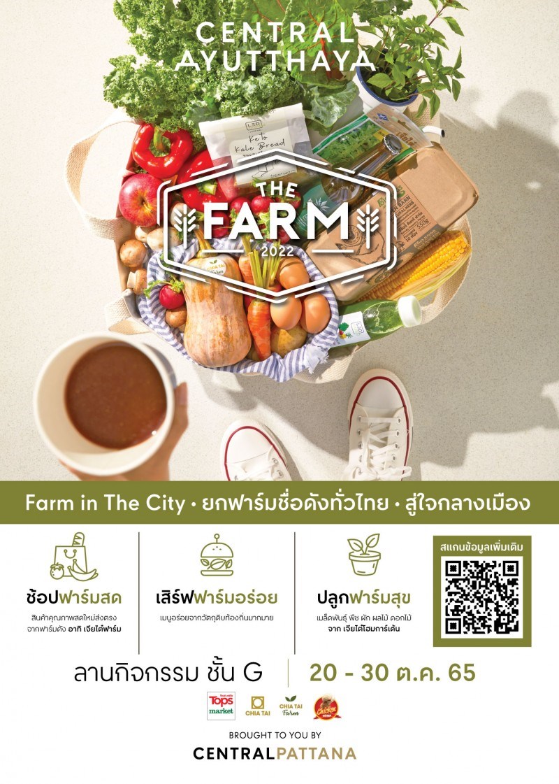 ยกขบวนฟาร์มสด จัดเต็มฟาร์มสุข เสิร์ฟฟาร์มอร่อย คัดสรรสินค้าคุณภาพทั้งผลิตภัณฑ์สินค้าเกษตร อาหารคาวหวาน ที่คุณไม่ควรพลาด! ส่งตรงฟาร์มสนุกไปกับฟาร์มไก่ สุดน่ารักแบบจัดเต็มเพื่อคุณ ในงาน The Farm 2022 กิจกรรมพิเศษ เพียงกินหรือช้อปภายในศูนย์การค้าฯ 300.- ขึ้นไป หรือ สมัครสมาชิกใหม่ The1 รับสิทธิ์!! Workshop ไข่ระบายสี (จำกัด 300 สิทธิ์ตลอดรายการ) ณ ลานกิจกรรมชั้น G ศูนย์การค้าเซ็นทรัล อยุธยา